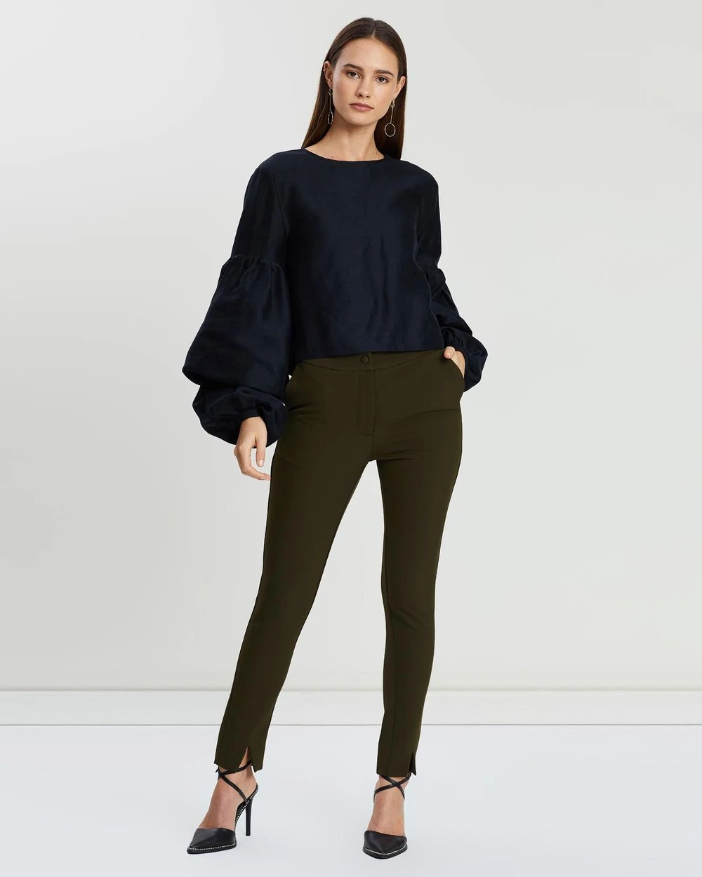 Our model is wearing size AU 8 pants. She is 170.2cm (5’7”) tall with a 80.0cm (31.5”) bust, a 61.0cm (24”) waist and 76.2cm (30”) hips.