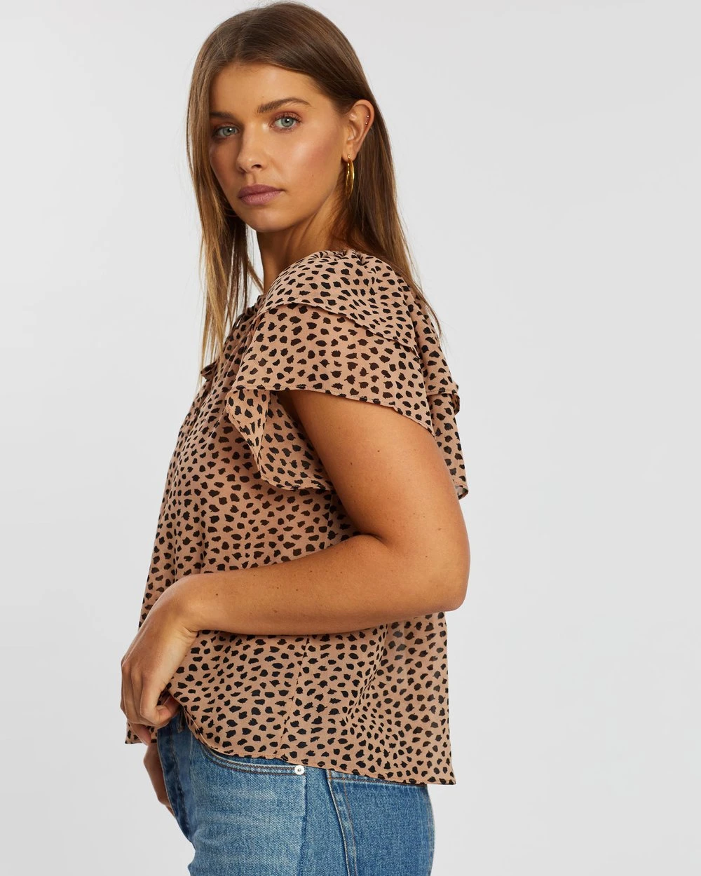 Our model is wearing a size AU 8 top. She is 180.3cm (5’11”) tall with a 83.8cm (33”) bust, a 61.0cm (24”) waist and 94.0cm (37”) hips.