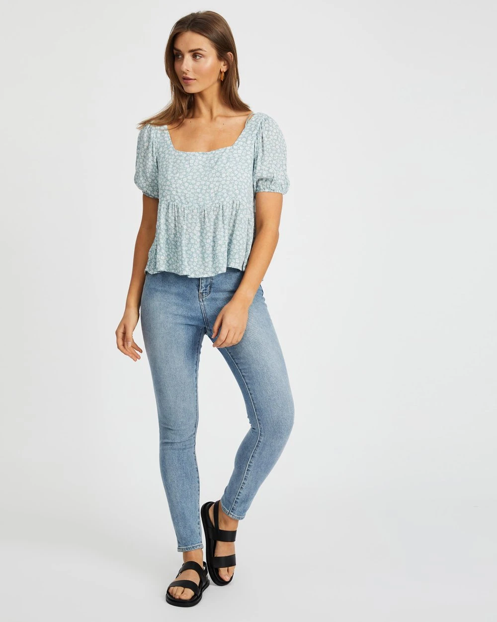 Finished in delicate florals, the Ayla Square Neck Blouse by Atmos&Here brings relaxed femininity to year-round dressing with a youthful flounce hem.