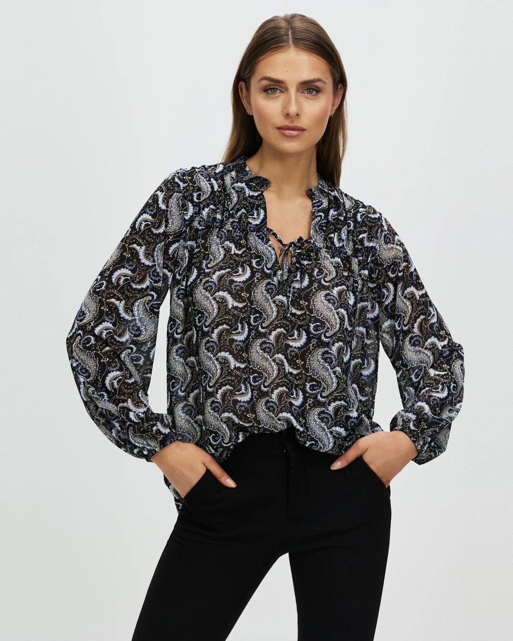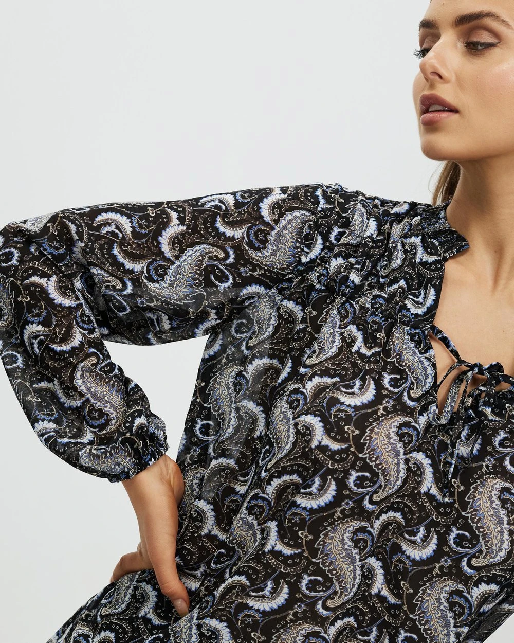 – Shirred ruffle collar