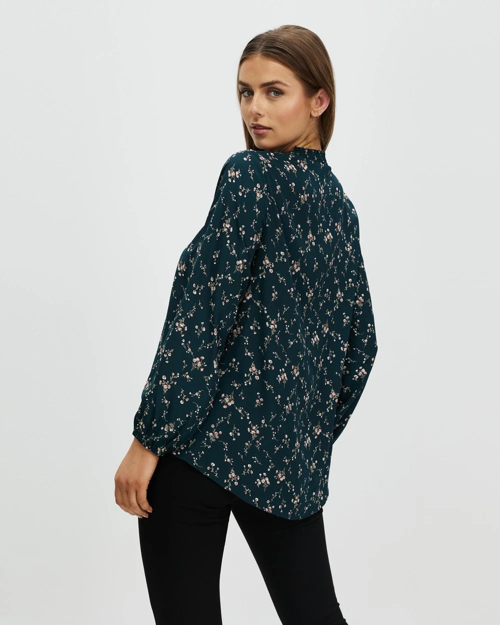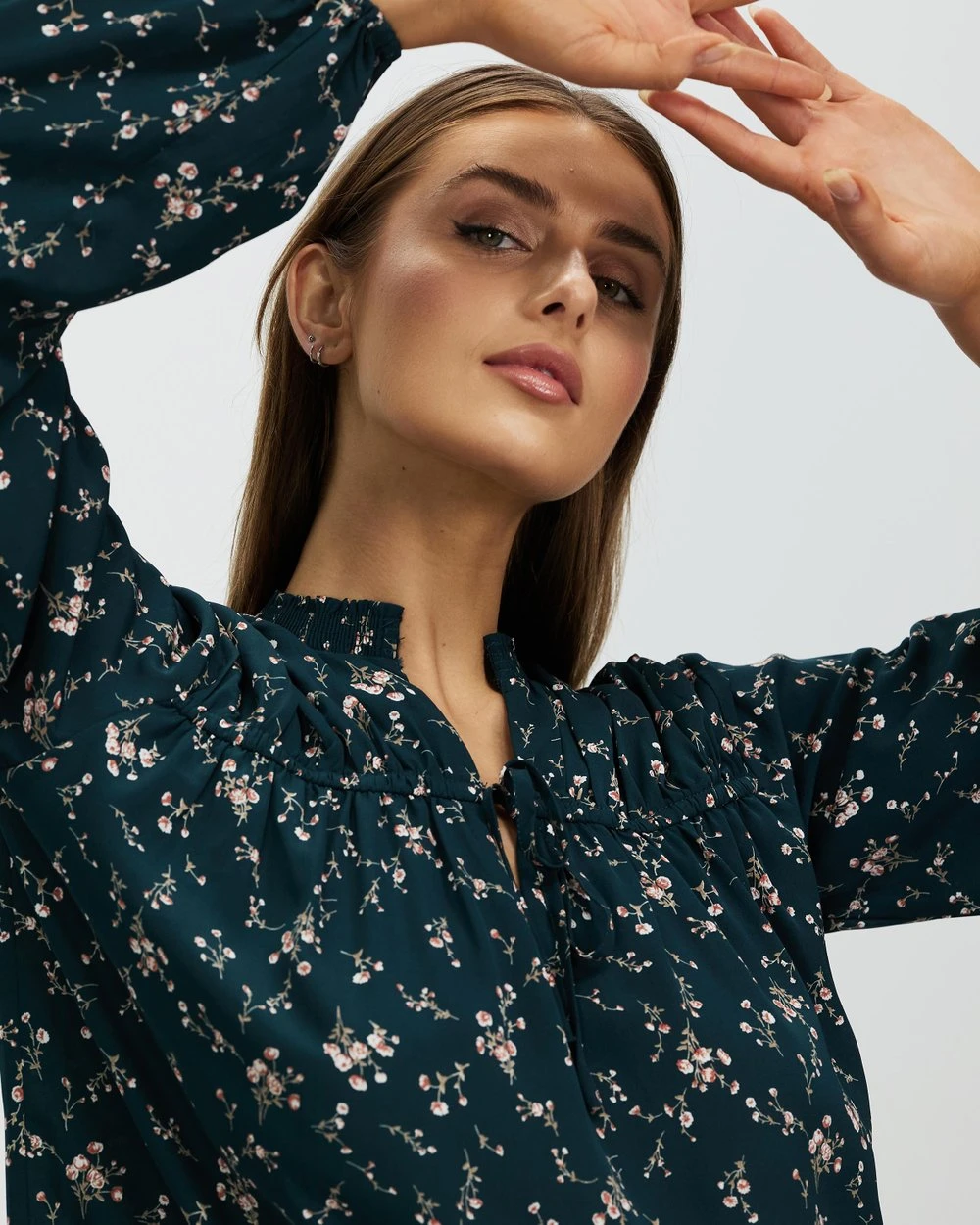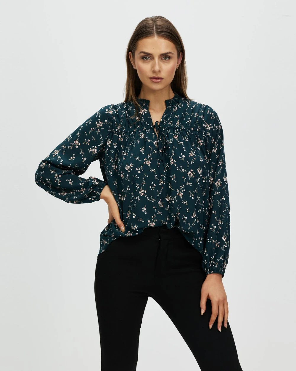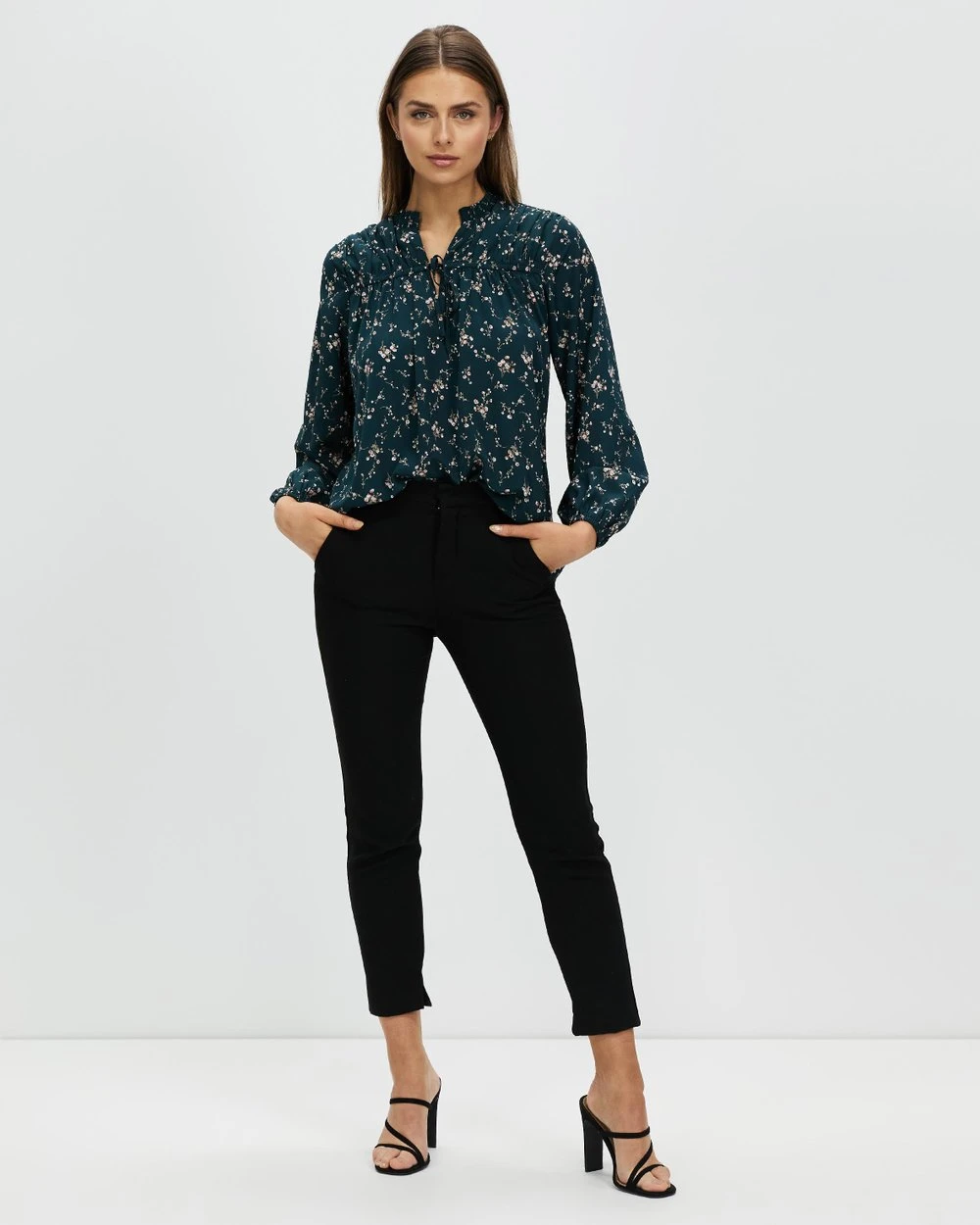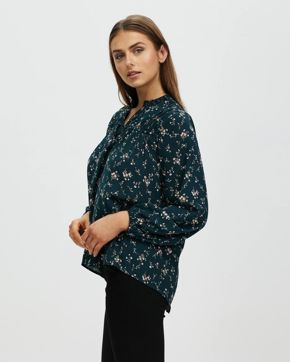 – Shirred ruffle collar