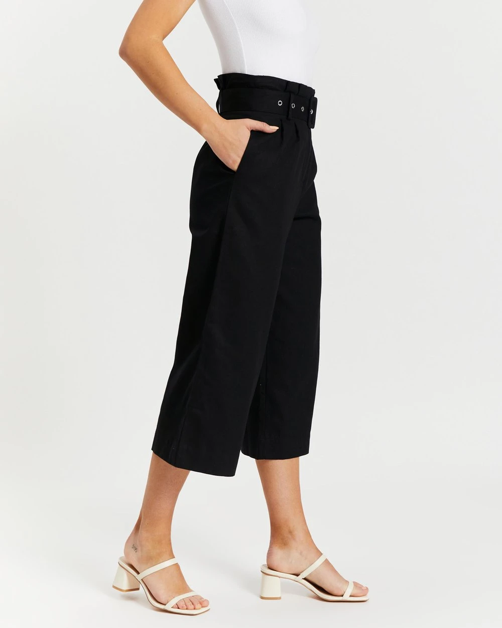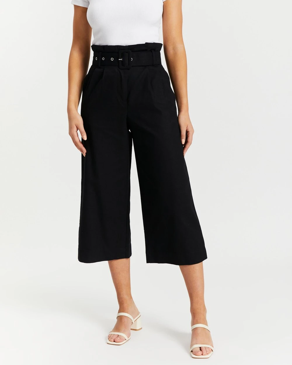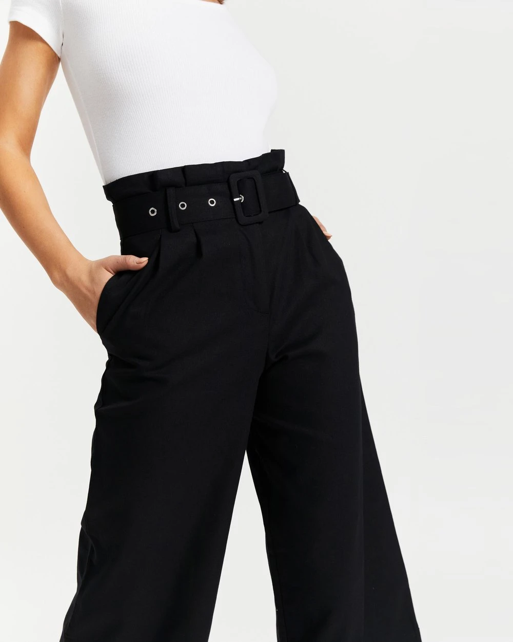 Modernise your work-to-evening edit with the Brenda Belted Wide Leg Pants from Atmos&Here finished with a cinched waist and cropped leg for a fashion-forward approach to the classic black pant.