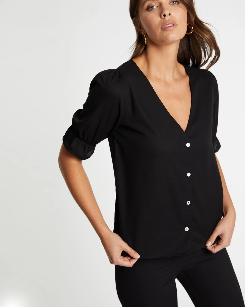 – Contrast button-up front