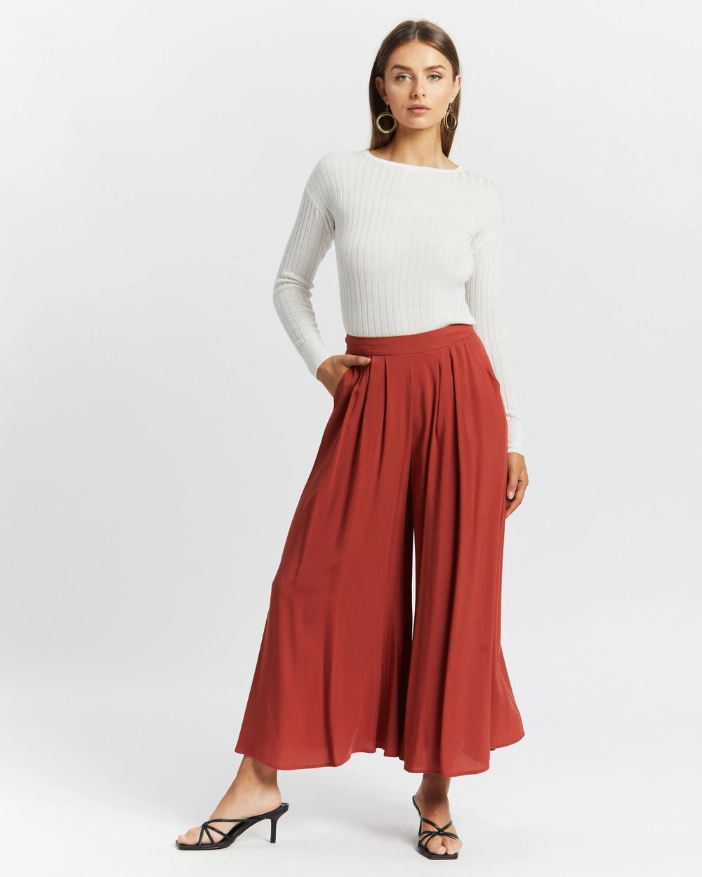 Length: Inside Leg: 62cm; Rise: 36cm; Leg Opening: 136cm (size AU 8). Our model is 176.5cm (5’9.5”) tall with an 81.3cm (32”) bust, a 62.2cm (24.5”) waist and 91.4cm (36”) hips.