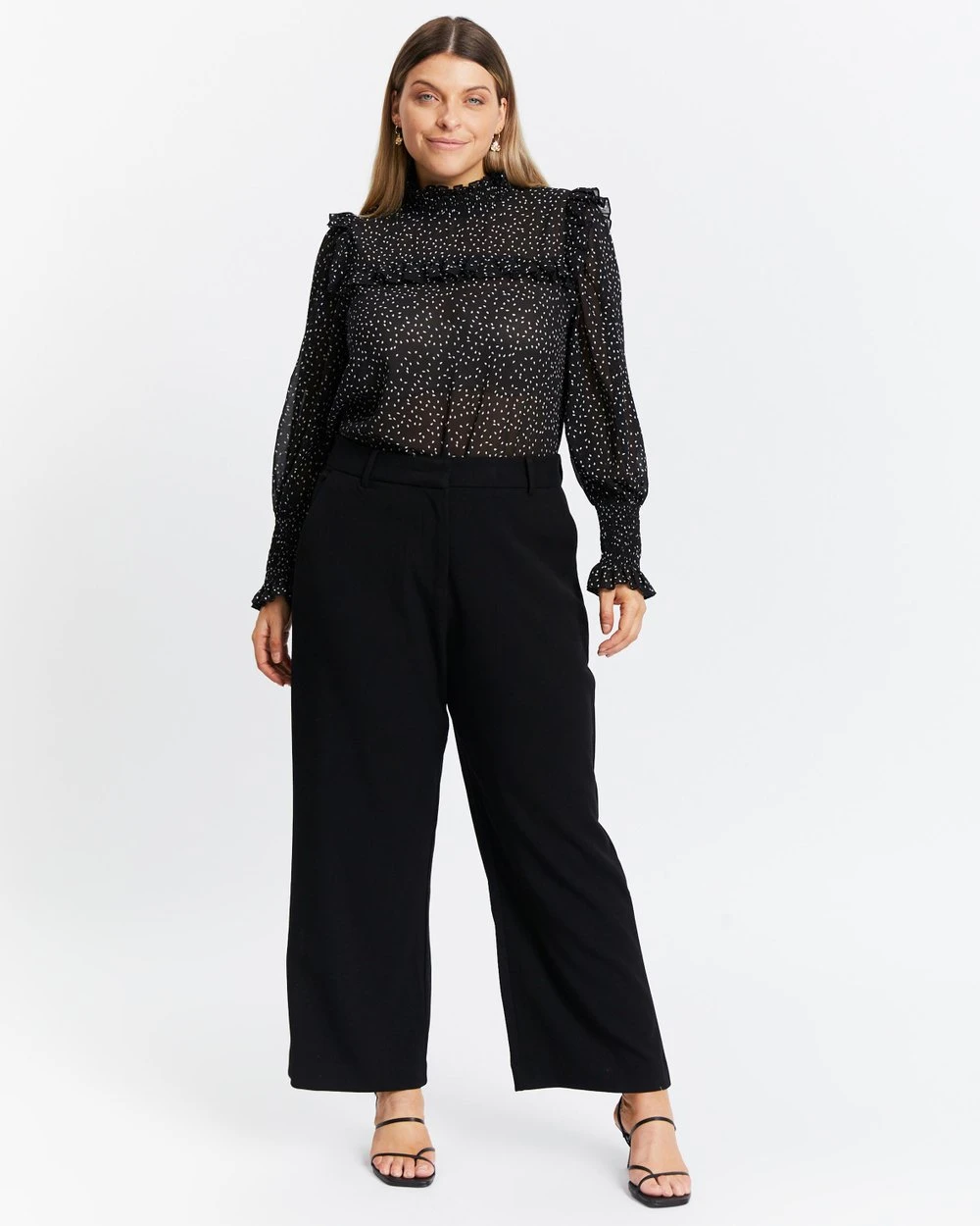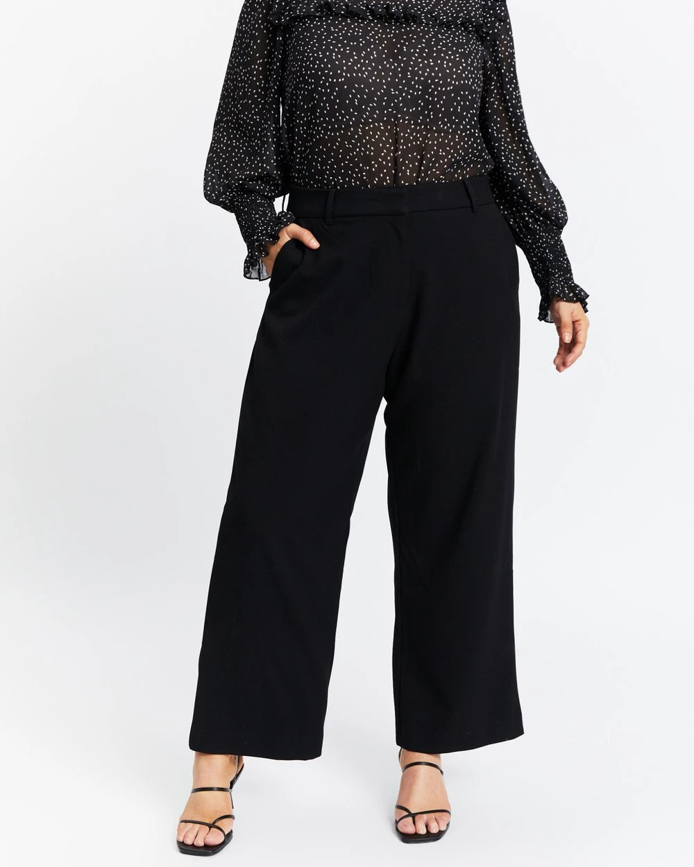 Length: Inside Leg: 69cm; Rise: 36cm; Leg Opening: 60cm (size AU 18). Our model is 175.3cm (5’9”) tall with a 108.0cm (42.5”) bust, a 87.6cm (34.5”) waist and 113.0cm (44.5”) hips.