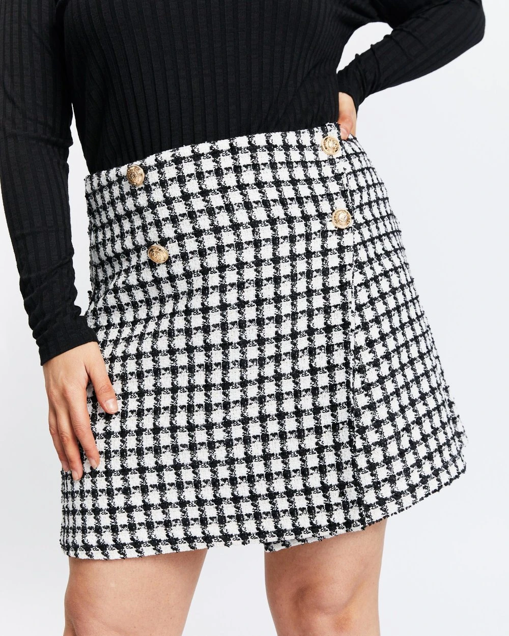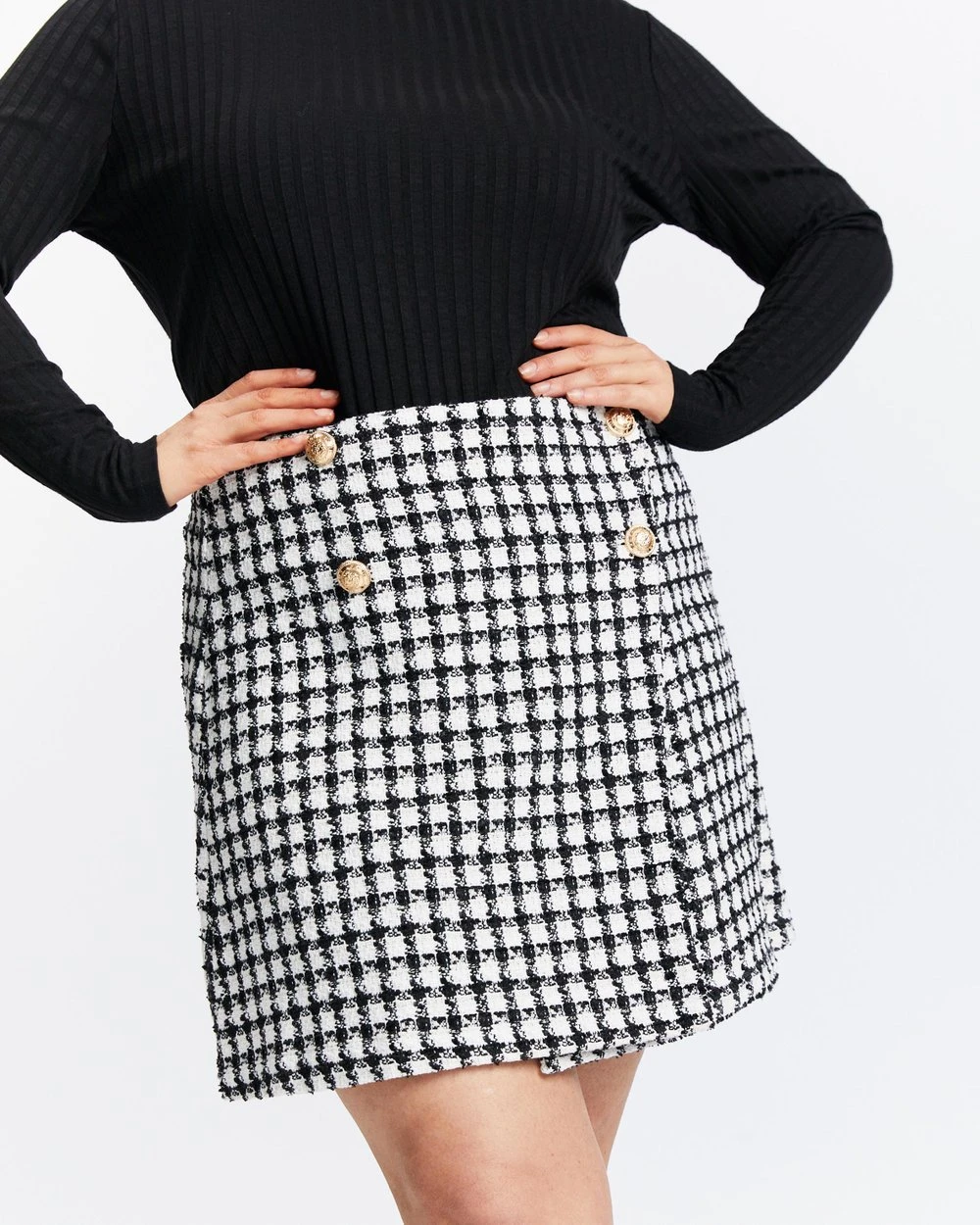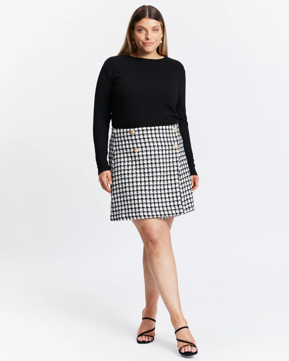 Channel 90s-inspired prep with the black boucle Gigi Skirt by Atmos&Here Curvy. Team with a fitted knit and mules or loafers for an on-trend bookish aesthetic.