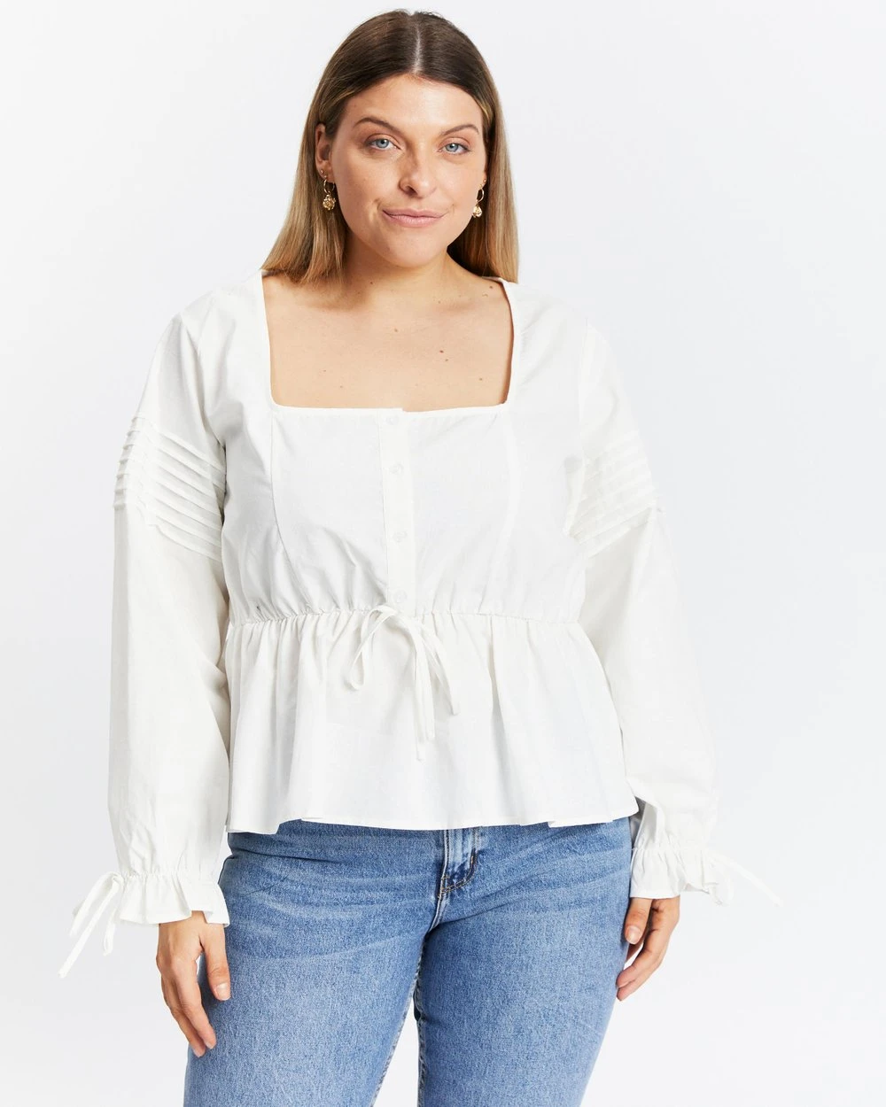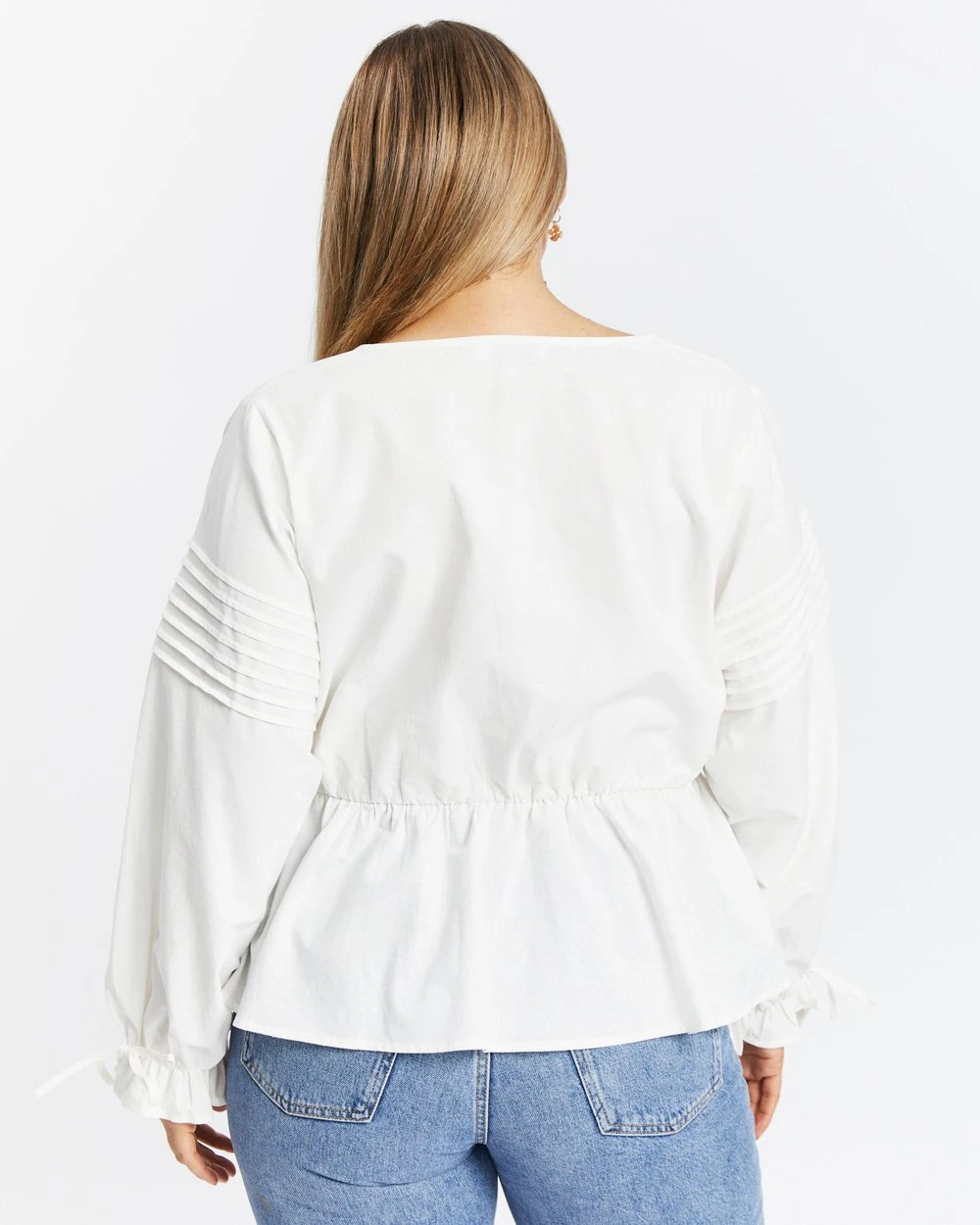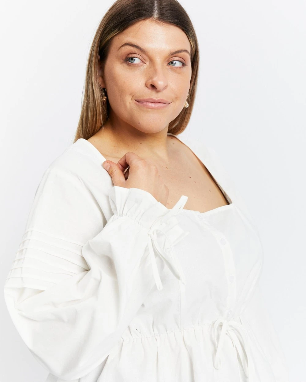 – Long blouson sleeves