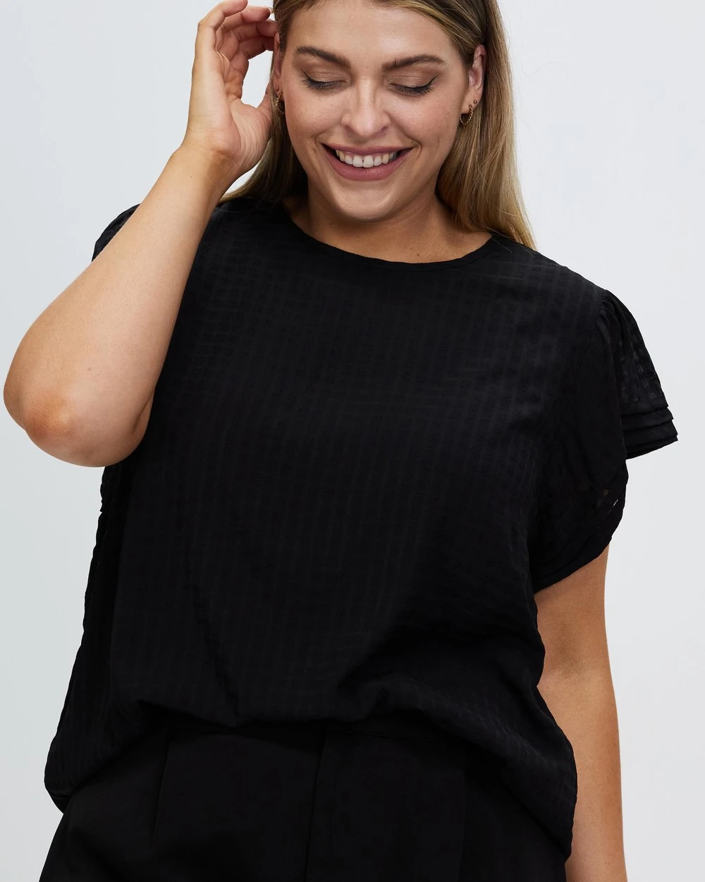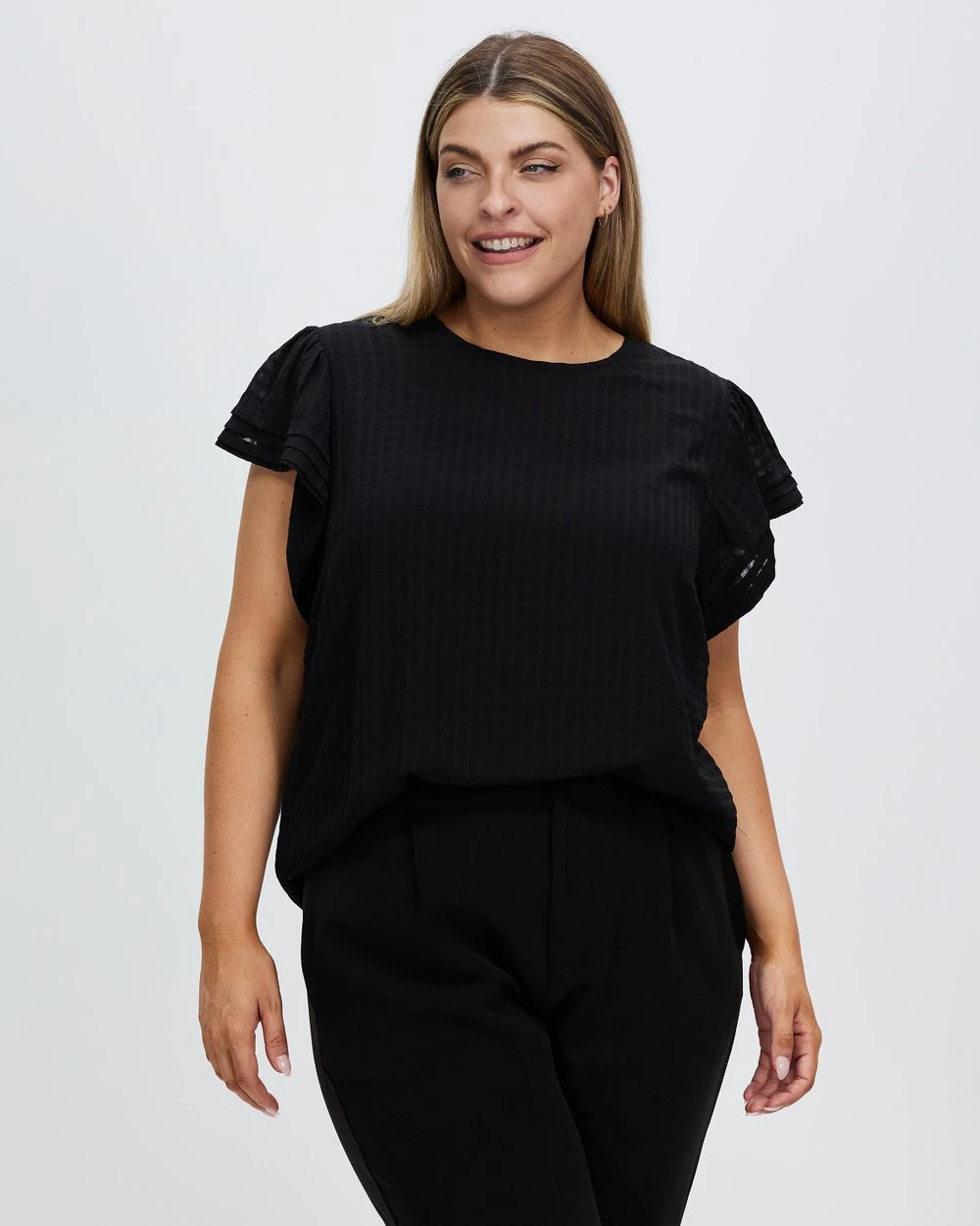 Atmos&Here Curvy Tessa Frill Sleeve Blouse Black