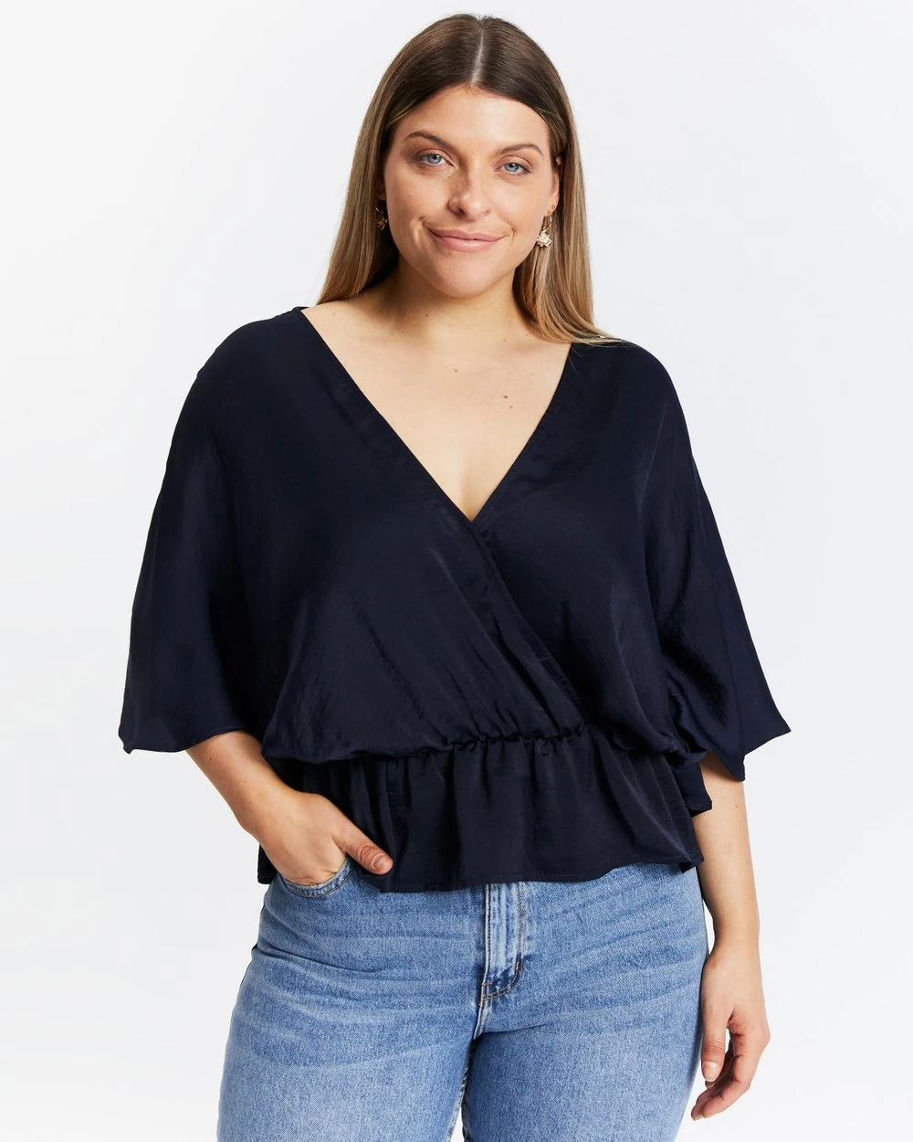 The Tina V-Neck Wrap Blouse by Atmos&Here Curvy is the perfect ‘jeans and a nice top’ silhouette. Dress it up with a slip skirt and heels, or down with your favourite denim.