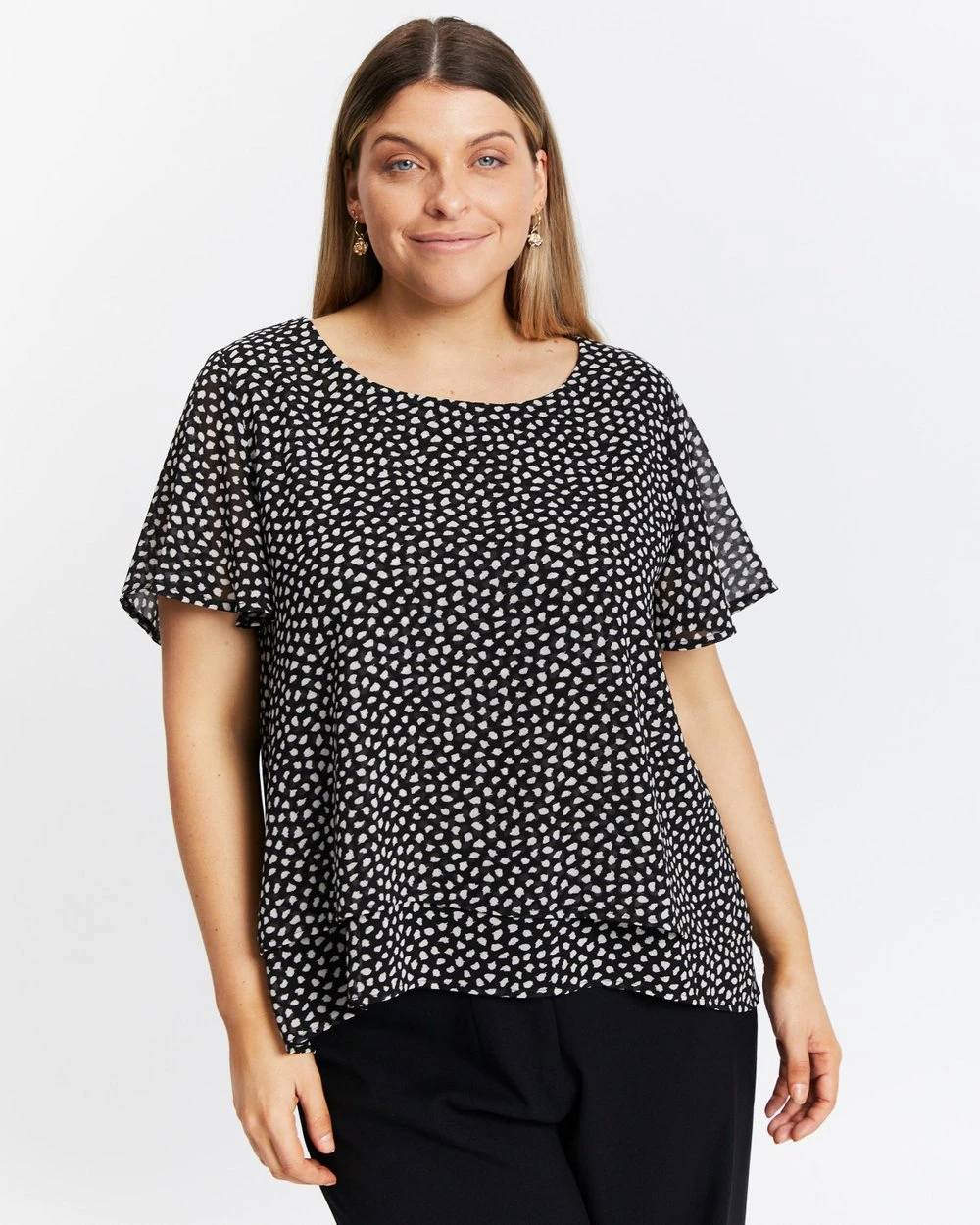 Atmos&Here Curvy Vivia Flutter Sleeve Blouse Black Speckle