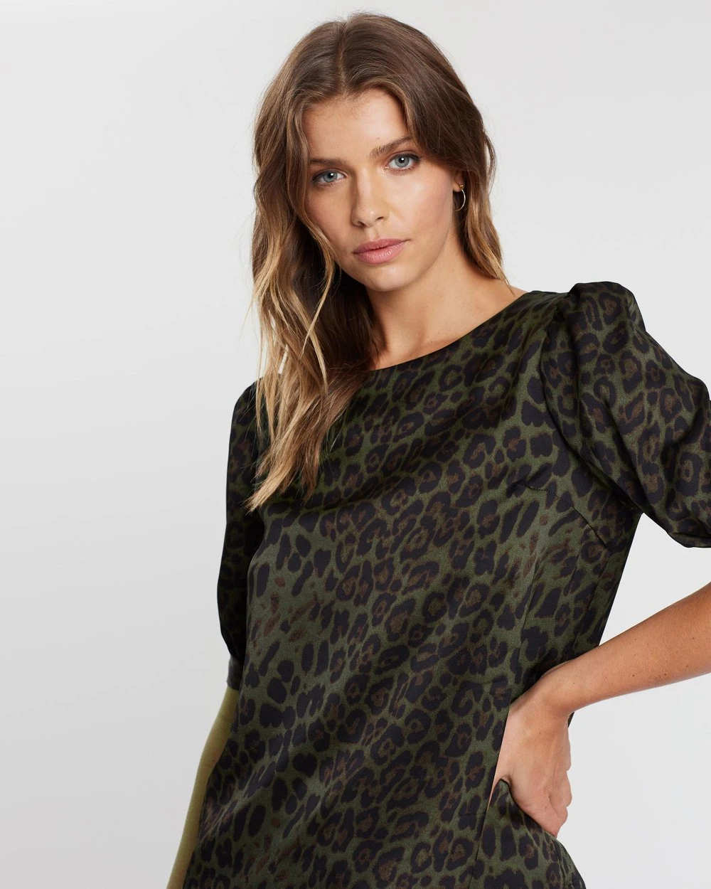 The Elise Blouse from Atmos&Here epitomises contemporary elegance, featuring a luminous leopard print and ruched, puff sleeves for a vintage-inspired aesthetic.