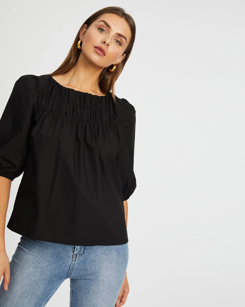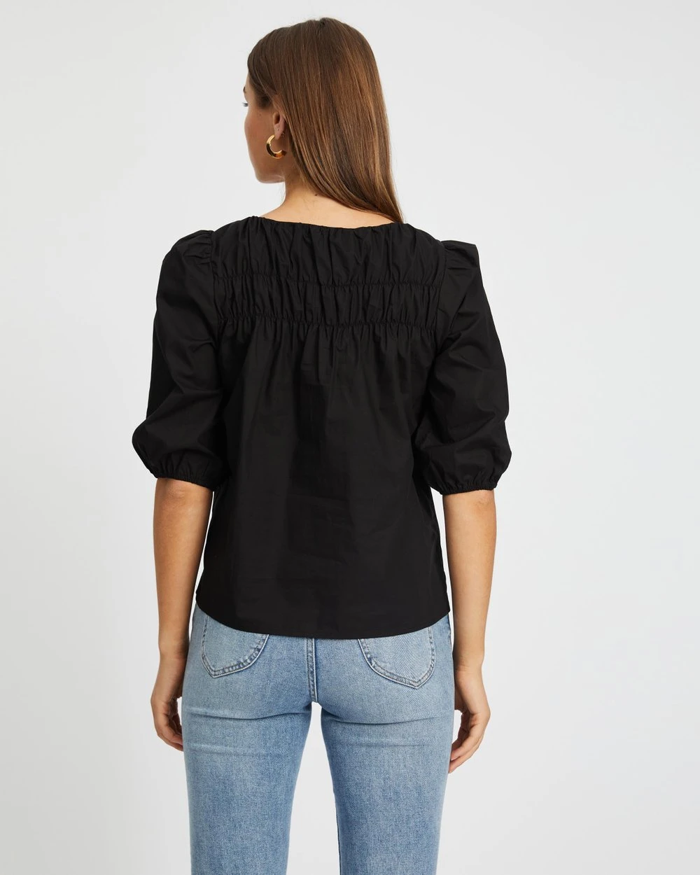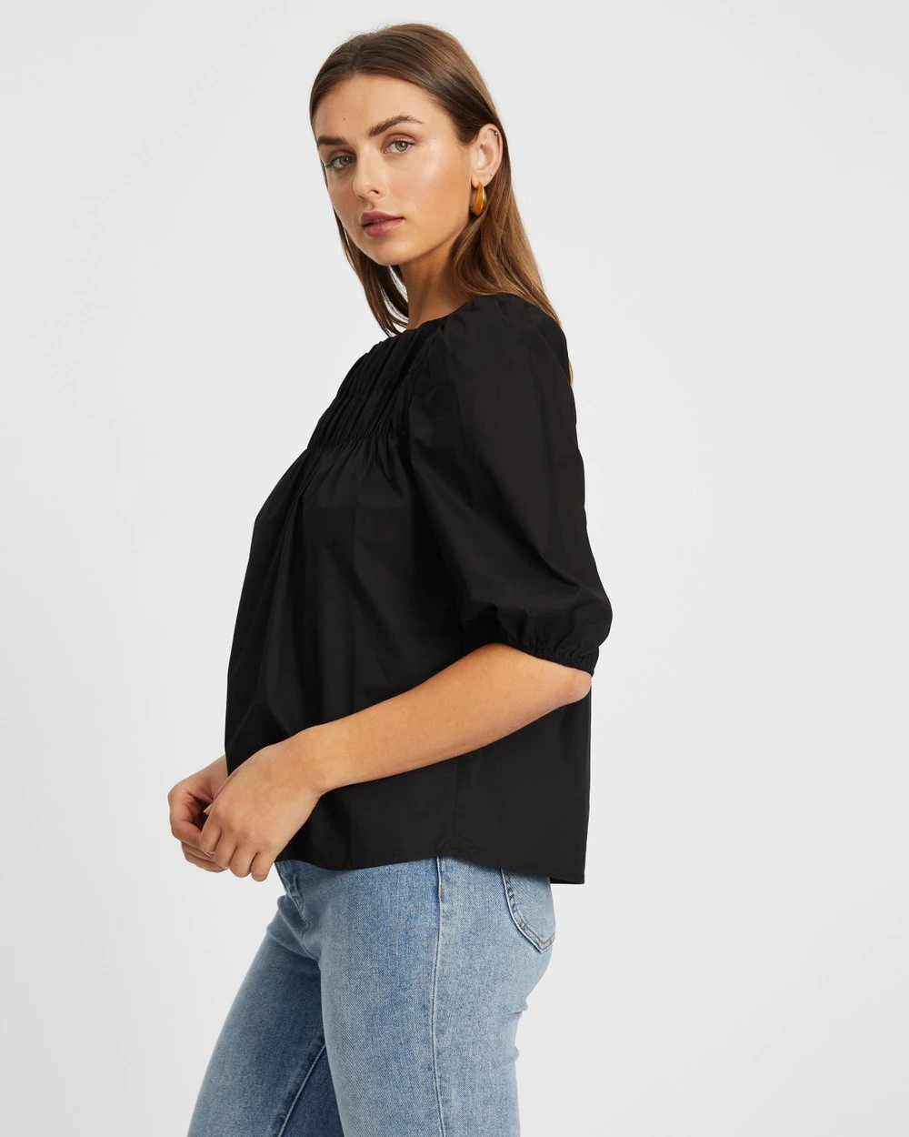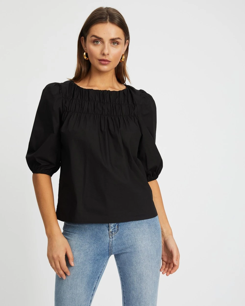 Cut with a light smock fit and romantic puff sleeves, the Esther Puff Sleeve Smock Blouse by Atmos&Here is the establishing piece for your cottagecore edit.