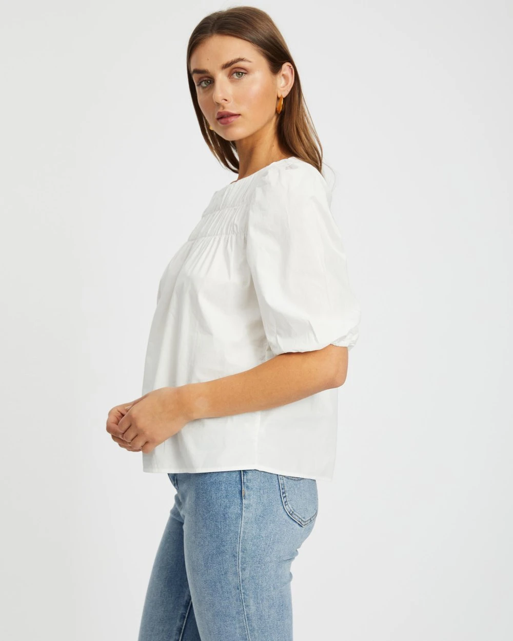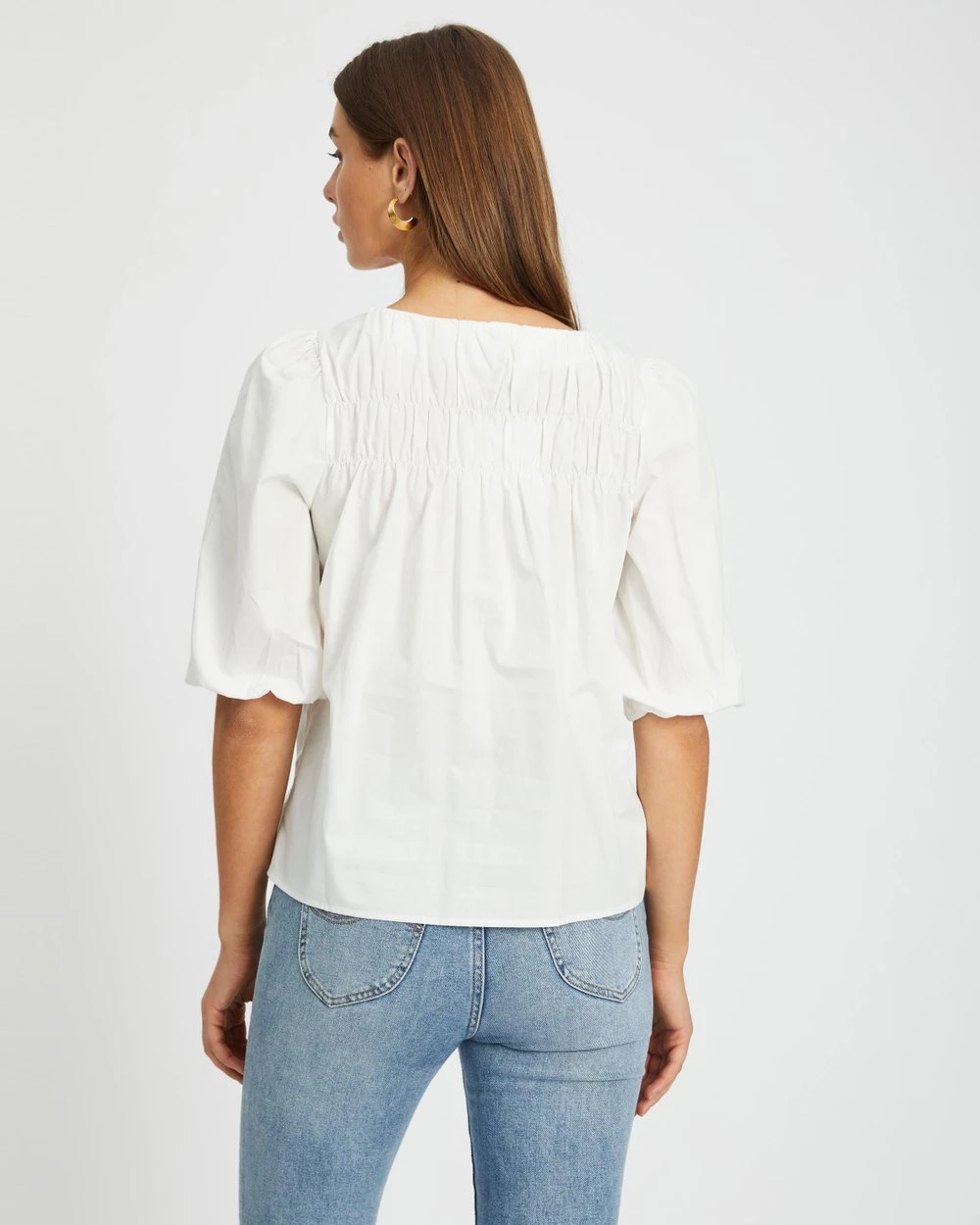 Cut with a light smock fit and romantic puff sleeves, the Esther Puff Sleeve Smock Blouse by Atmos&Here is the establishing piece for your cottagecore edit.