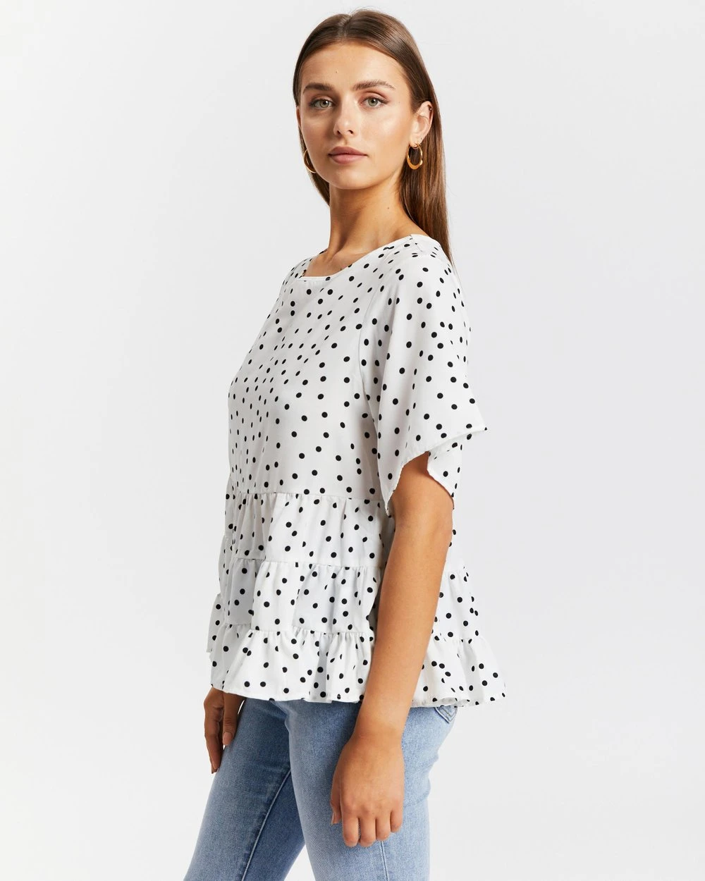 – Smock design; tiered, ruffled hem