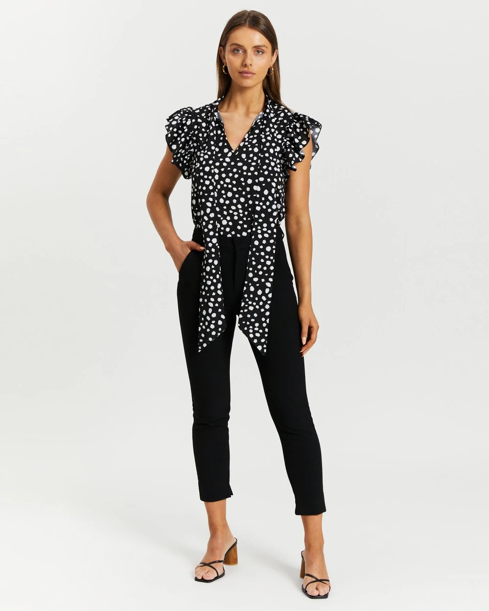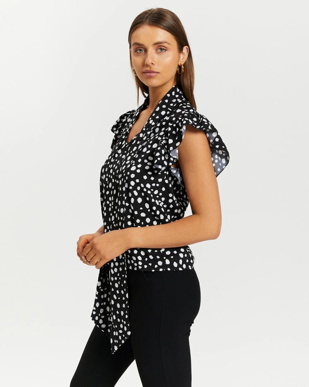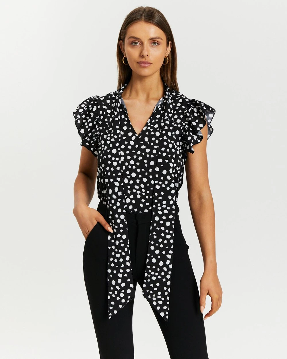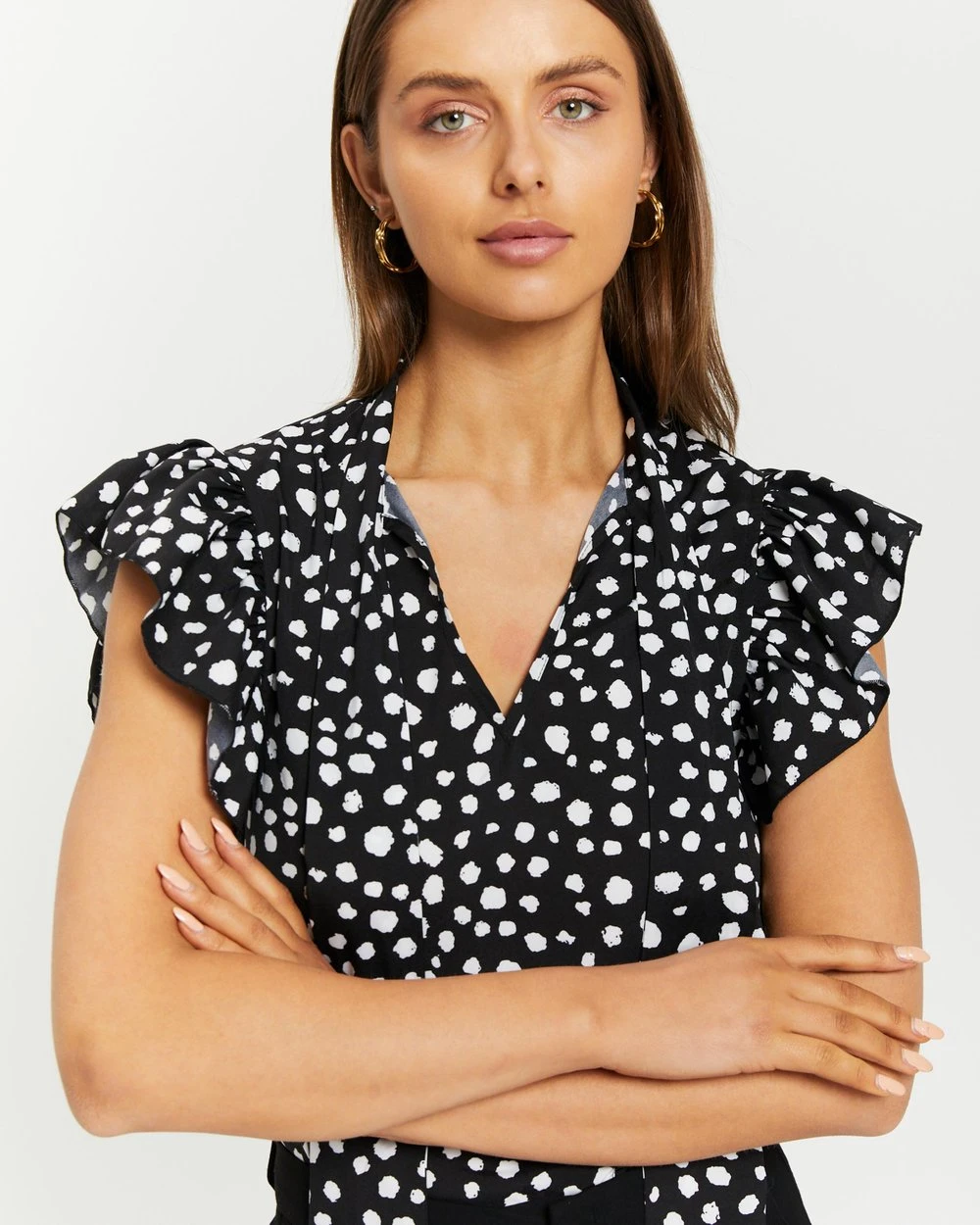 – Ruffled sleeves