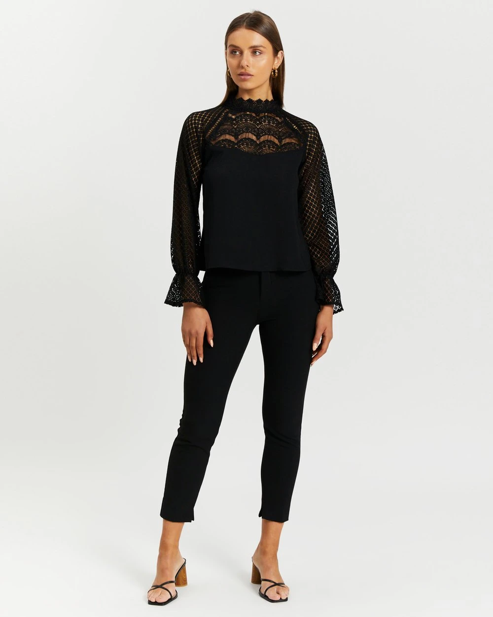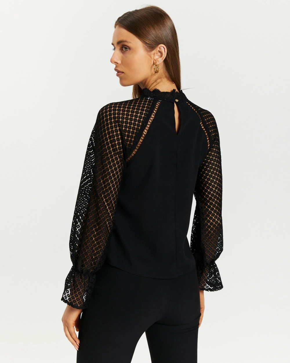 – Lightweight woven lace; non-stretch; partially lined; some sheerness