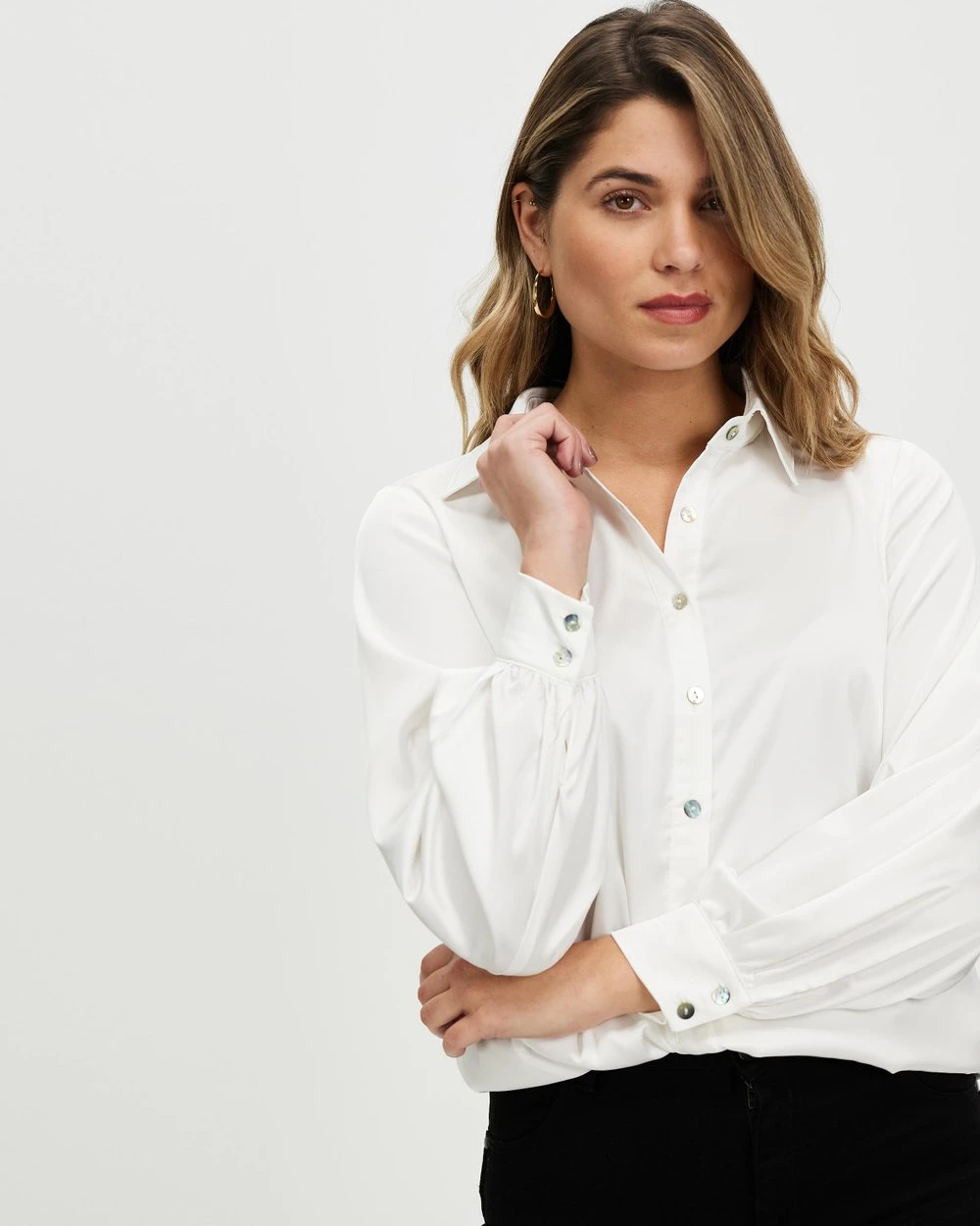 – Long sleeves; button up cuffs