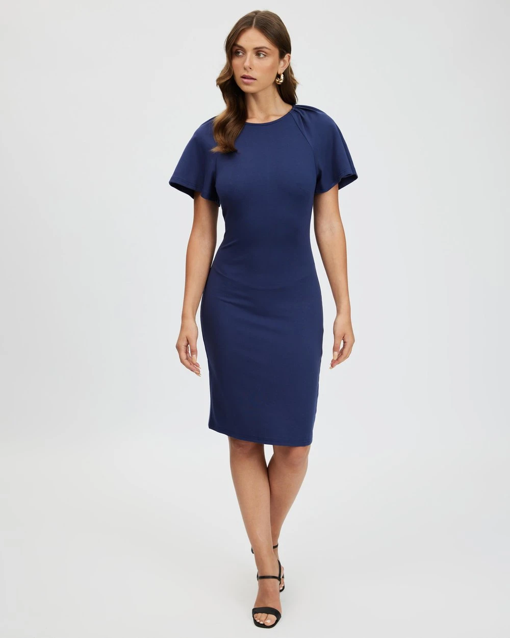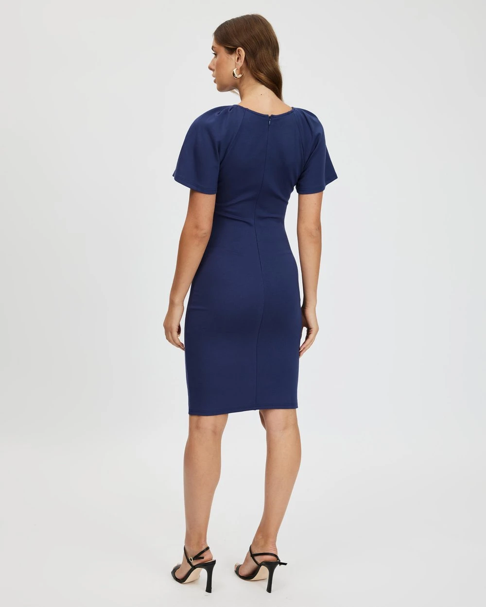 Length: 99cm (size AU 8). Our model is 176.5cm (5’9.5”) tall with a 81.3cm (32”) bust, a 62.2cm (24.5”) waist and 91.4cm (36”) hips.