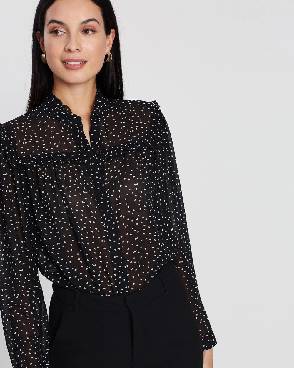 Crafted from sheer chiffon, the polka dot Romi Shirt from Atmos&Here is perfect tucked into high-rise jeans and tailored pants for a chic office to evening edit.