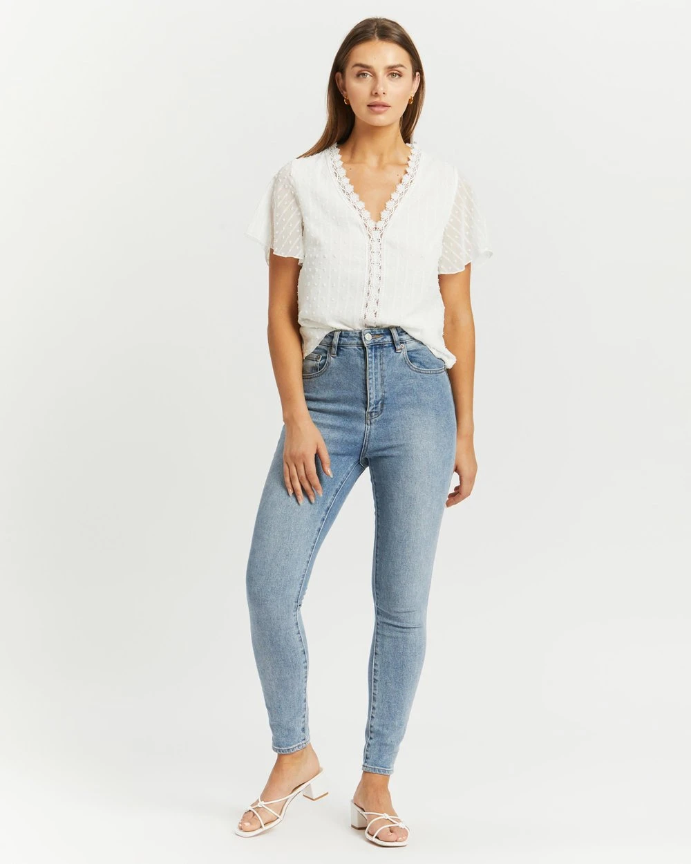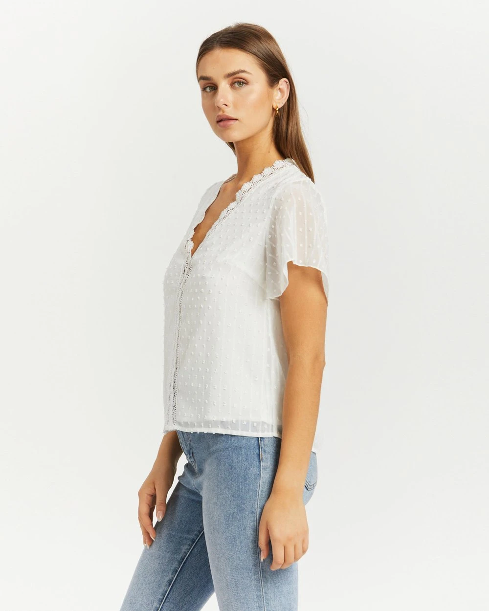 – V-neckline with lace trim