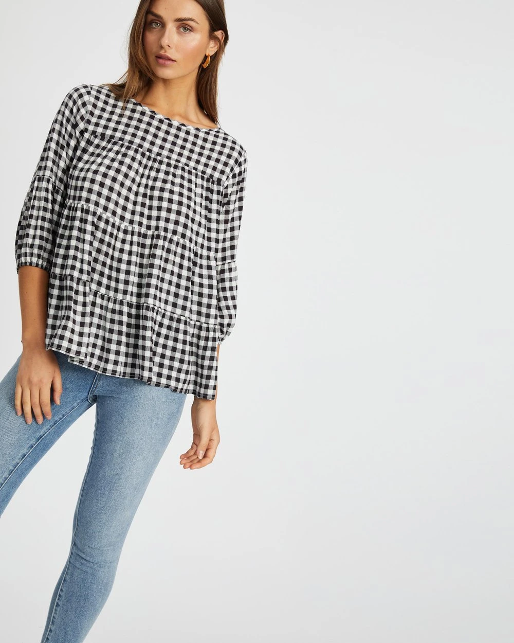 Atmos&Here brings nonchalant elegance to your spring-summer edit with the comfy Rosie Smock Blouse, finished in a wholesome gingham print.