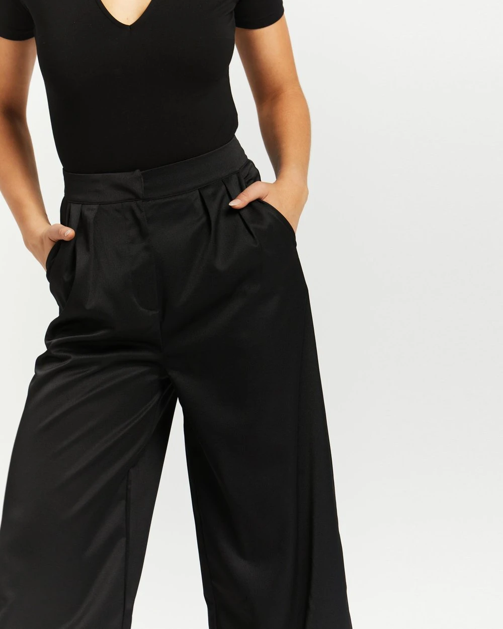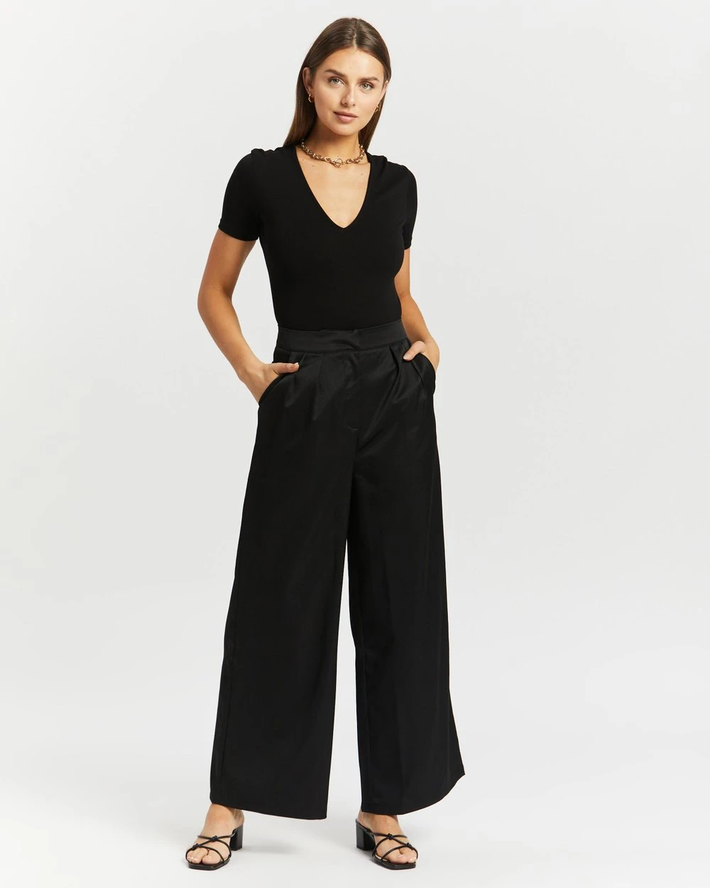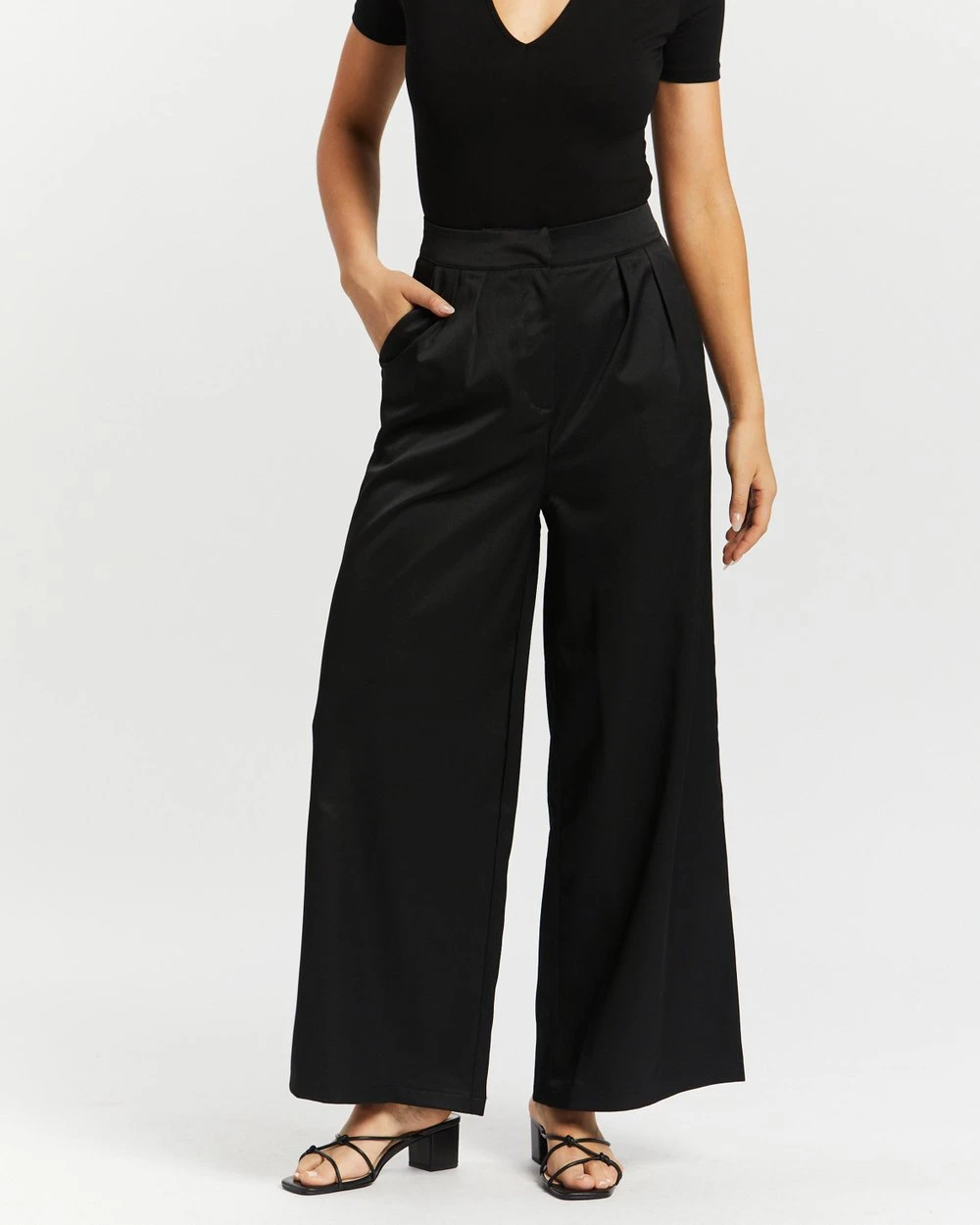 Atmos&Here Sia Pleat Front Wide Leg Pants Black