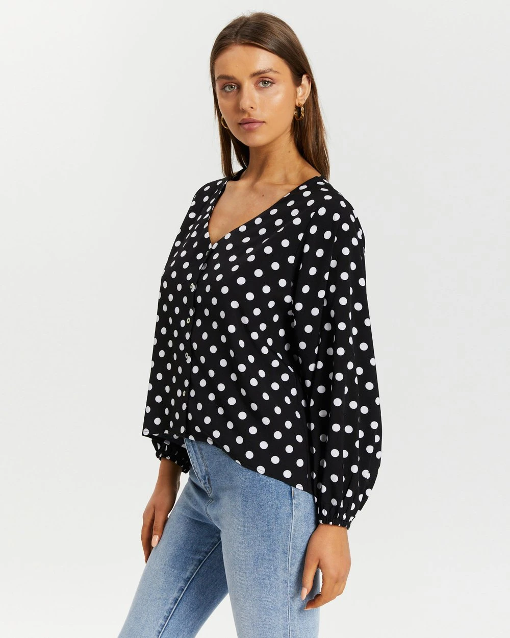 – Blouson sleeves