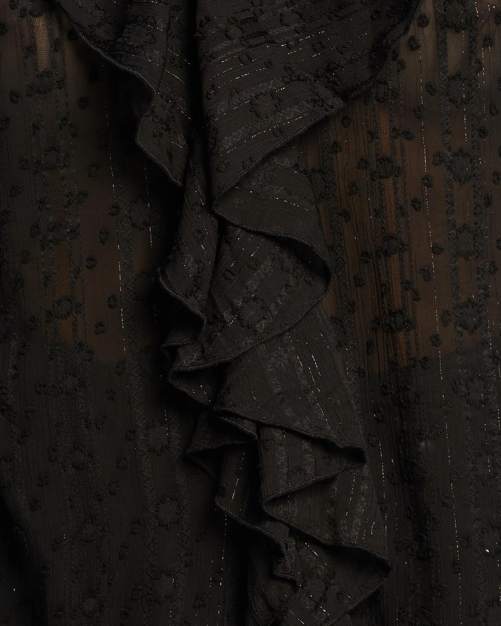 Length: 63cm (size AU 8). Our model is 176.5cm (5’9.5”) tall with a 81.3cm (32”) bust, a 62.2cm (24.5”) waist and 91.4cm (36”) hips.