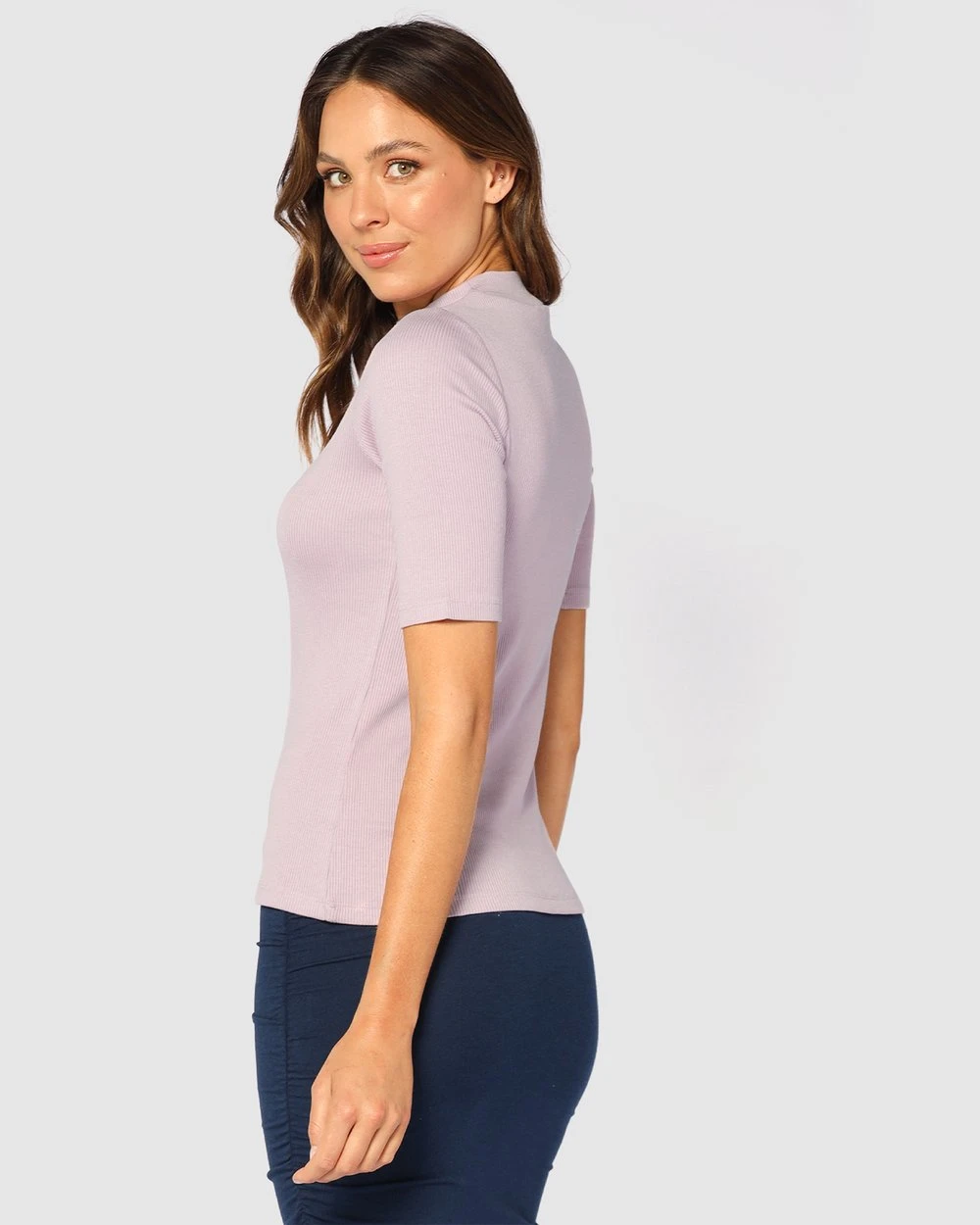 The ultimate everyday layer made from bamboo and organic cotton. Cut in a slim fit, the Taylor Ribbed Top by Bamboo Body features an elegant high neckline and short sleeves that reach just above the elbow. The ribbed fabric feels luxuriously soft against the skin while having a UPF rating of 50+.