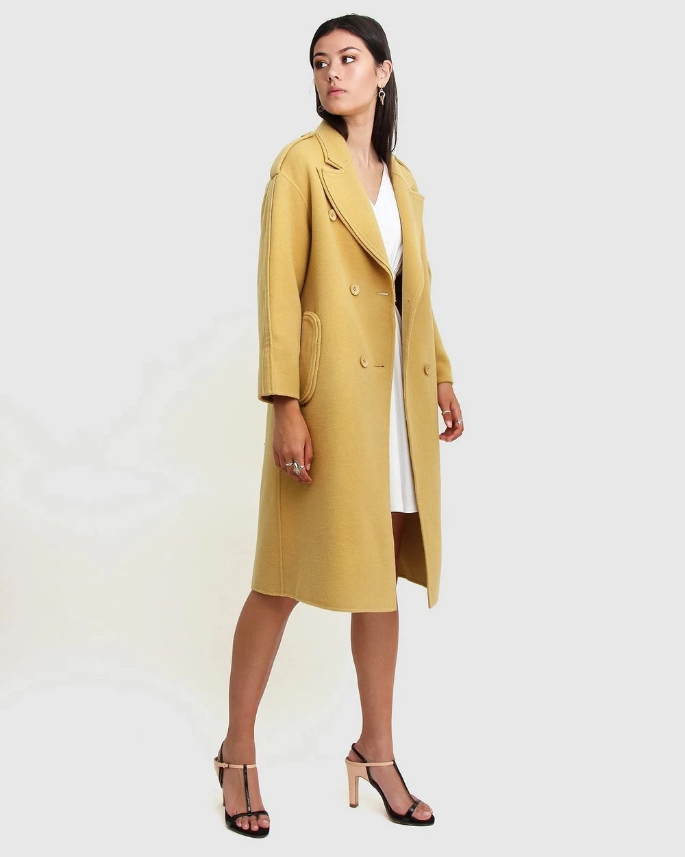 The Aussie Sky Double-Breasted Wool Coat by Belle & Bloom provides a cocoon of warmth with its wool exterior. Rock these bold shades and pleated details while maintaining a timeless and elegant look.