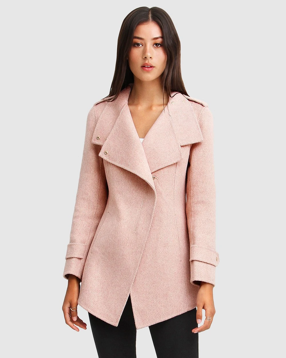 With a cosier take on the biker style jacket, the Bad Girl Wool Blend Moto Coat by Belle & Bloom is crafted from a wool blend with all the classic moto details. It features an asymmetrical zip with all the hardware to add some bling to your winter style.