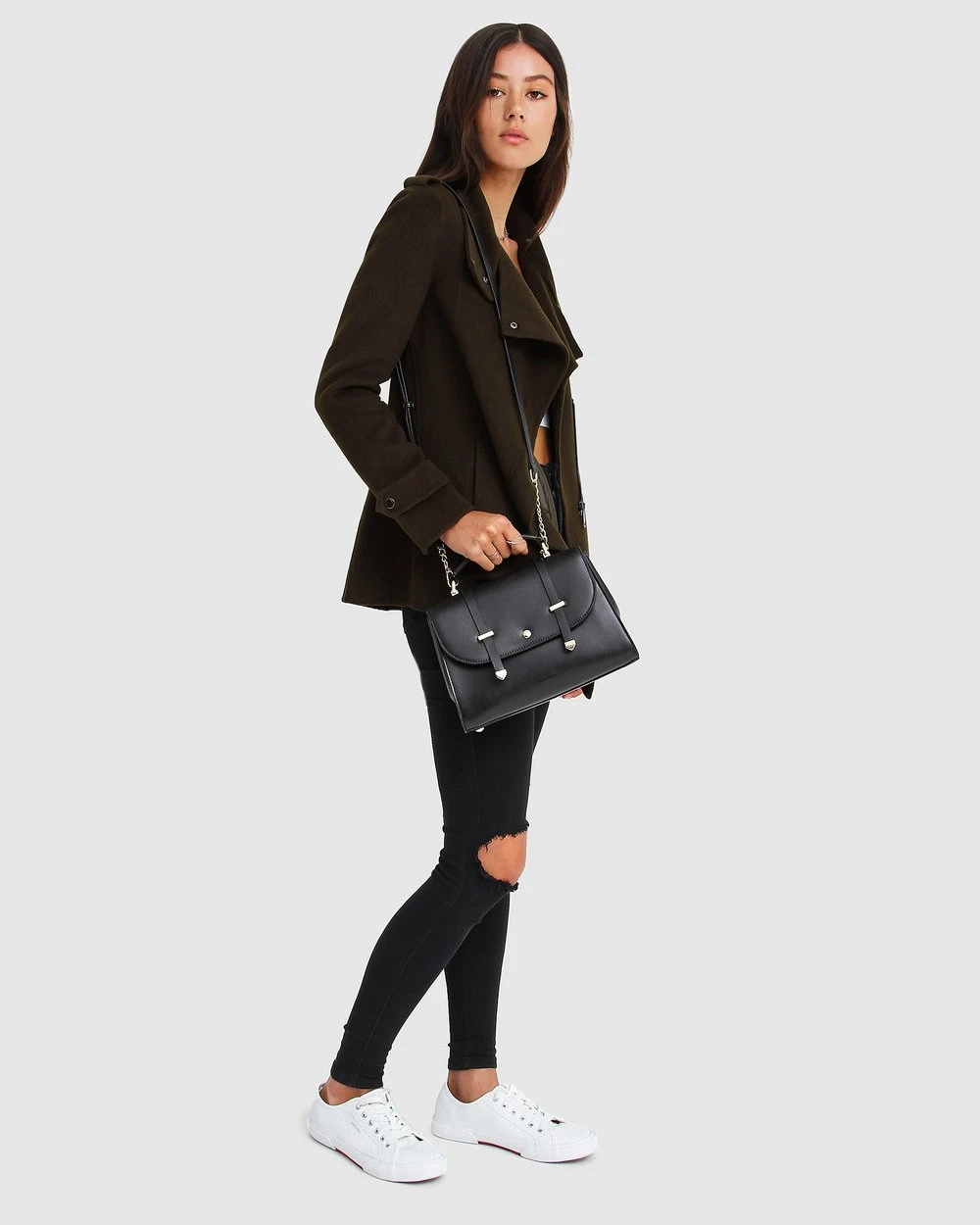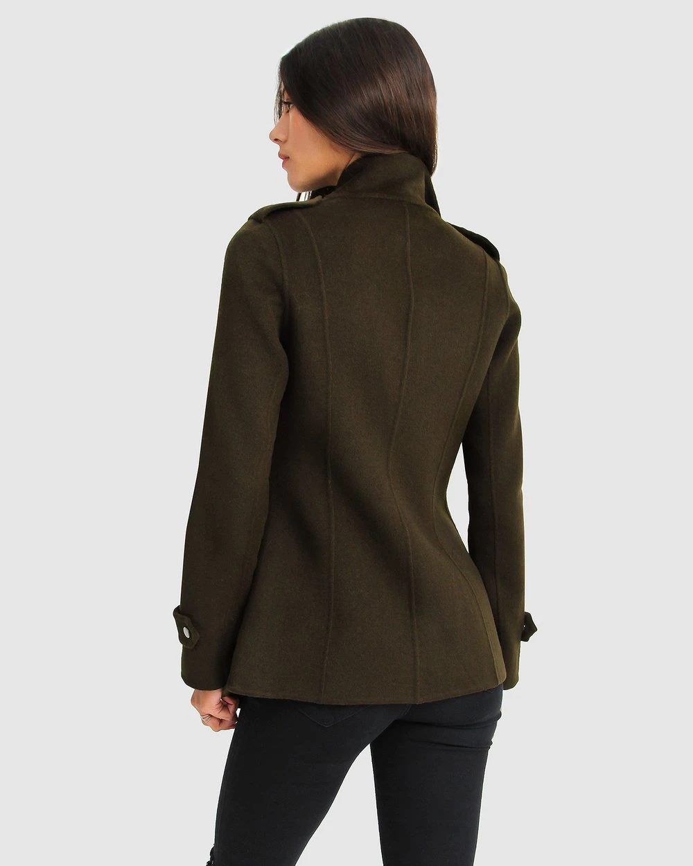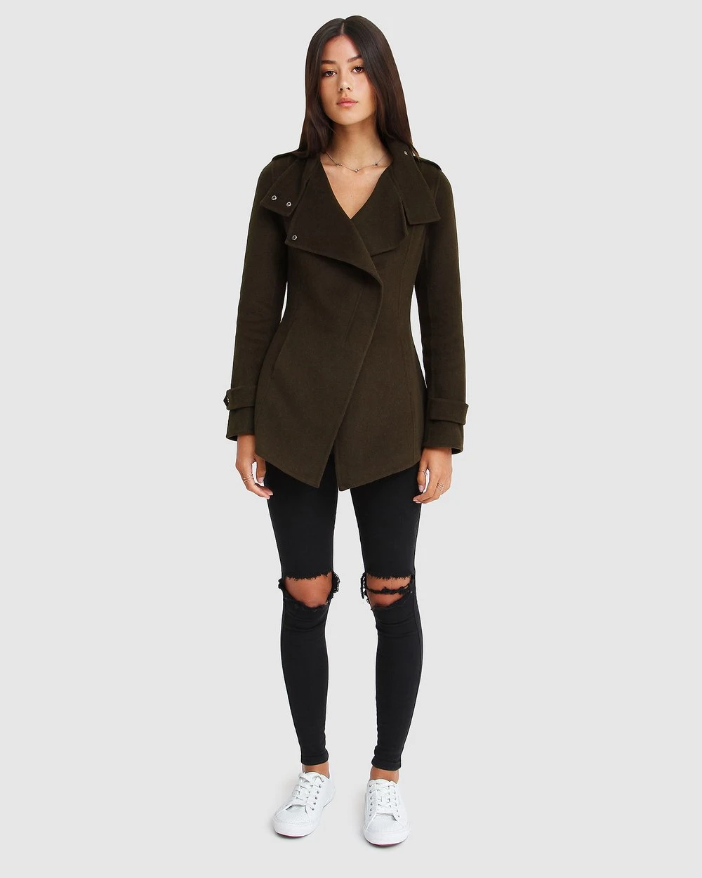 With a cosier take on the biker style jacket, the Bad Girl Wool Blend Moto Coat by Belle & Bloom is crafted from a wool blend with all the classic moto details. It features an asymmetrical zip with all the hardware to add some bling to your winter style.