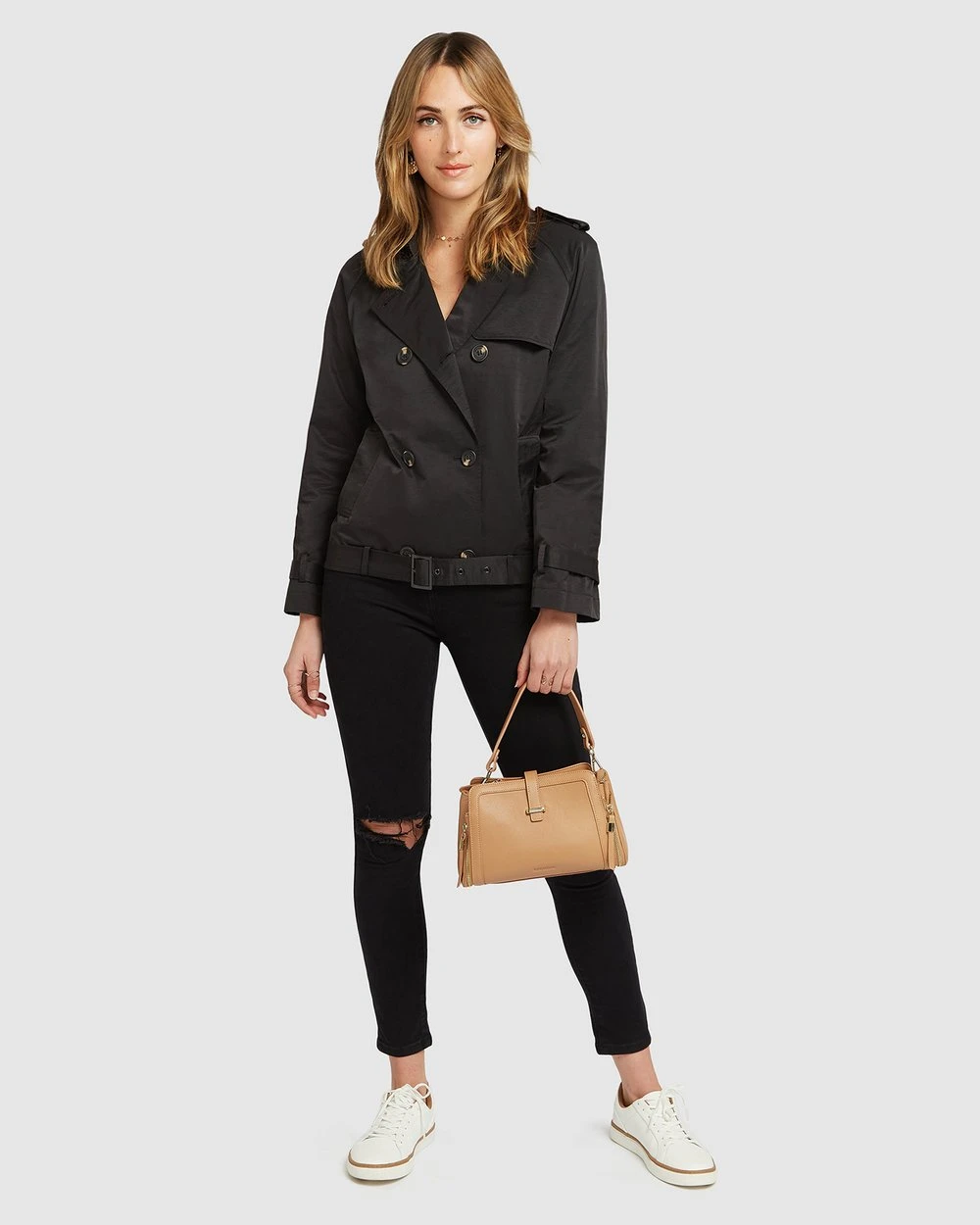 Keeping it short for summer, the Cool Nights Cropped Trench Coat by Belle & Bloom is both stylish and functional with its breathable, water resistant fabric. We love this for evenings and for featuring your outfit underneath.
