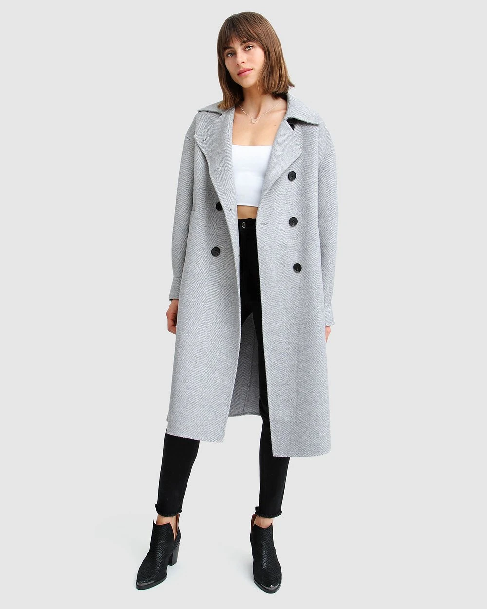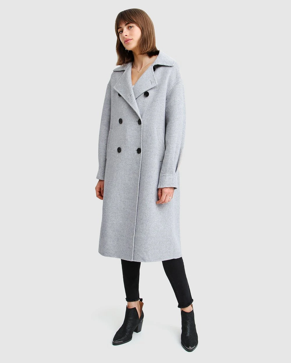 With a double breasted and oversize cut, the Dream Lover Loose Fit Wool Blend Coat by Belle & Bloom looks sharp and sophisticated in this fresh shade of grey. This statement fit leaves plenty of room to layer all of your best autumn looks.