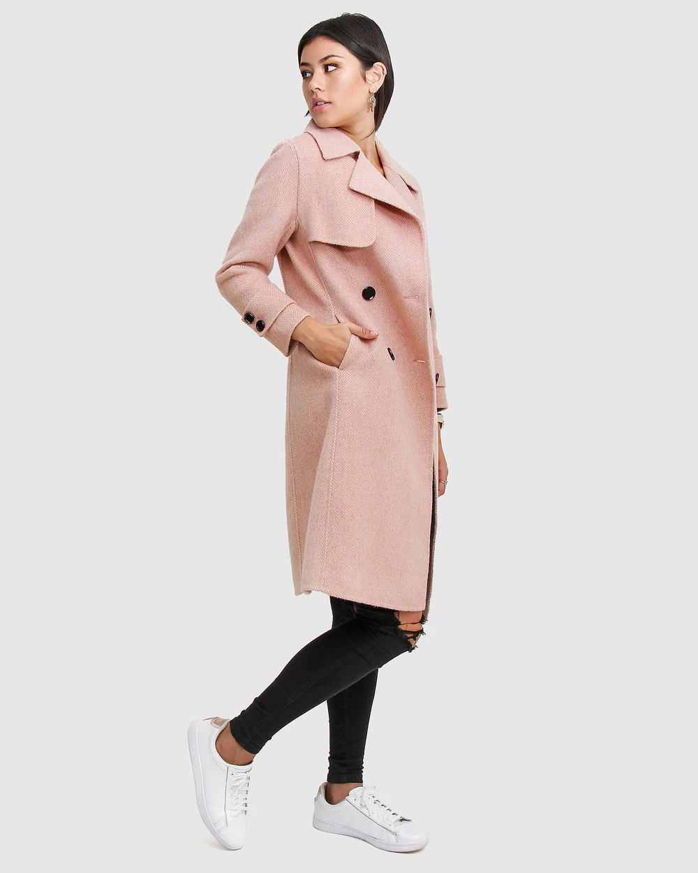 Endless Attention Wool Coat by Belle & Bloom is crafted from 100% double-brushed wool and showcases large notch lapels. Decorative buttons gives a glamorous touch to double-breasted closure and detailed cuffs. The classic military silhouette and a tailored cut ensures this practical coat is timeless and easy to style.
