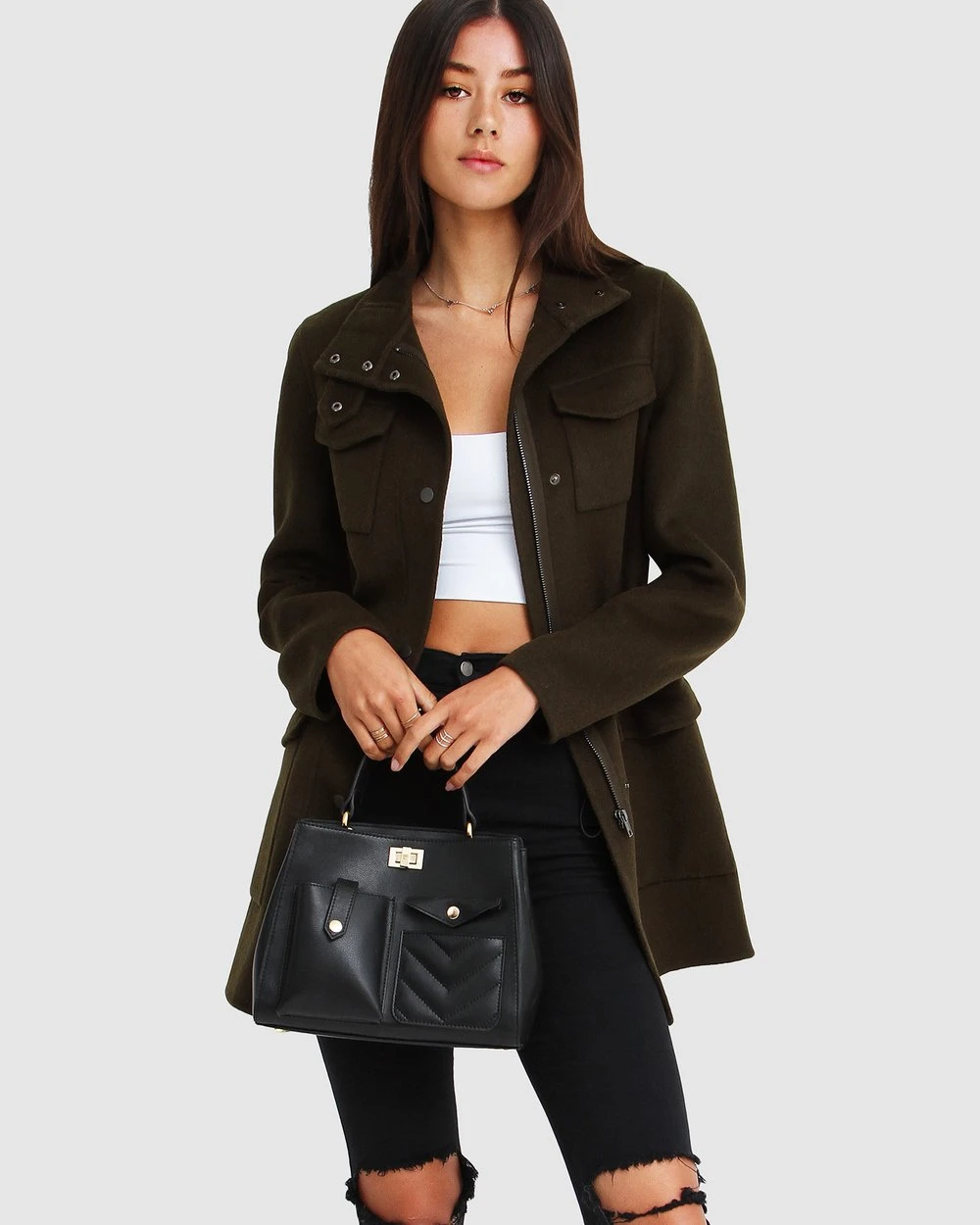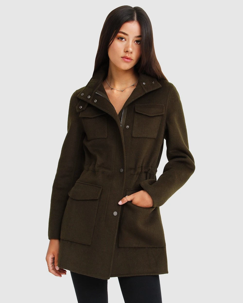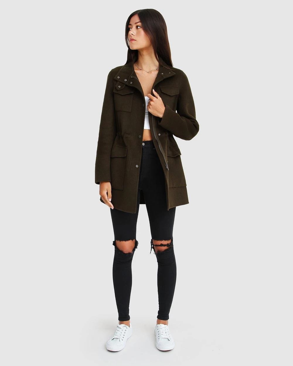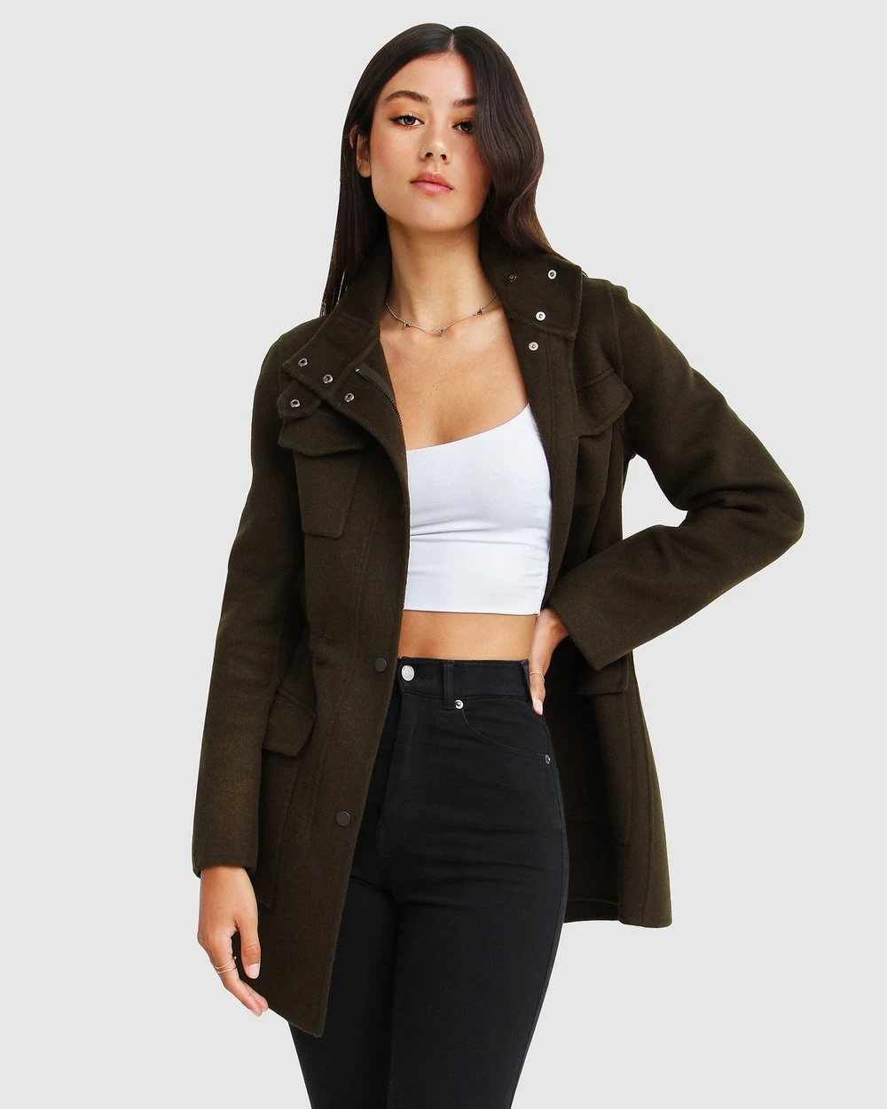 Taking some backcountry inspo, the Heartbreaker Wool Blend Utility Coat by Belle & Bloom brings this field jacket into urban territory. Complete with plenty of pockets and an adjustable waist, this double-brushed wool blend coat is great for any adventure.