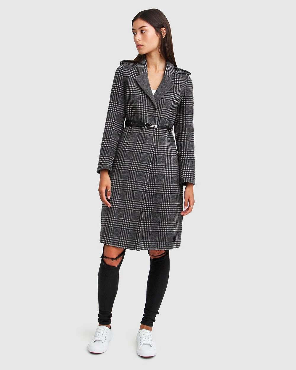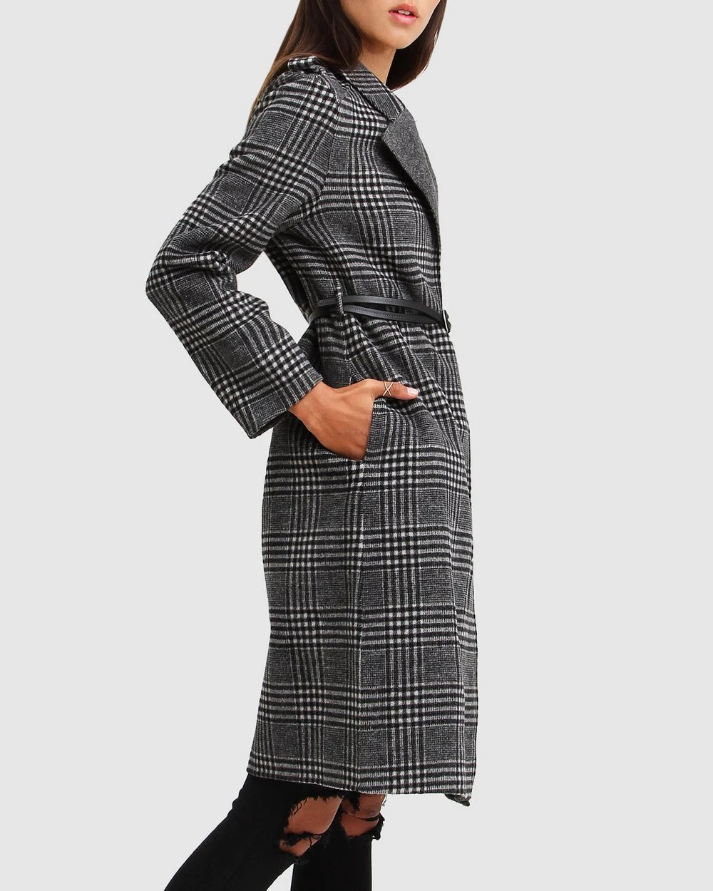 Jealousy Belted Wool Blend Coat by Belle & Bloom looks perfectly polished with a leather belt to cinch your style together. Clean finished with a snap, this tailored bold check coat is already confirmed to be this winter’s outerwear key item.