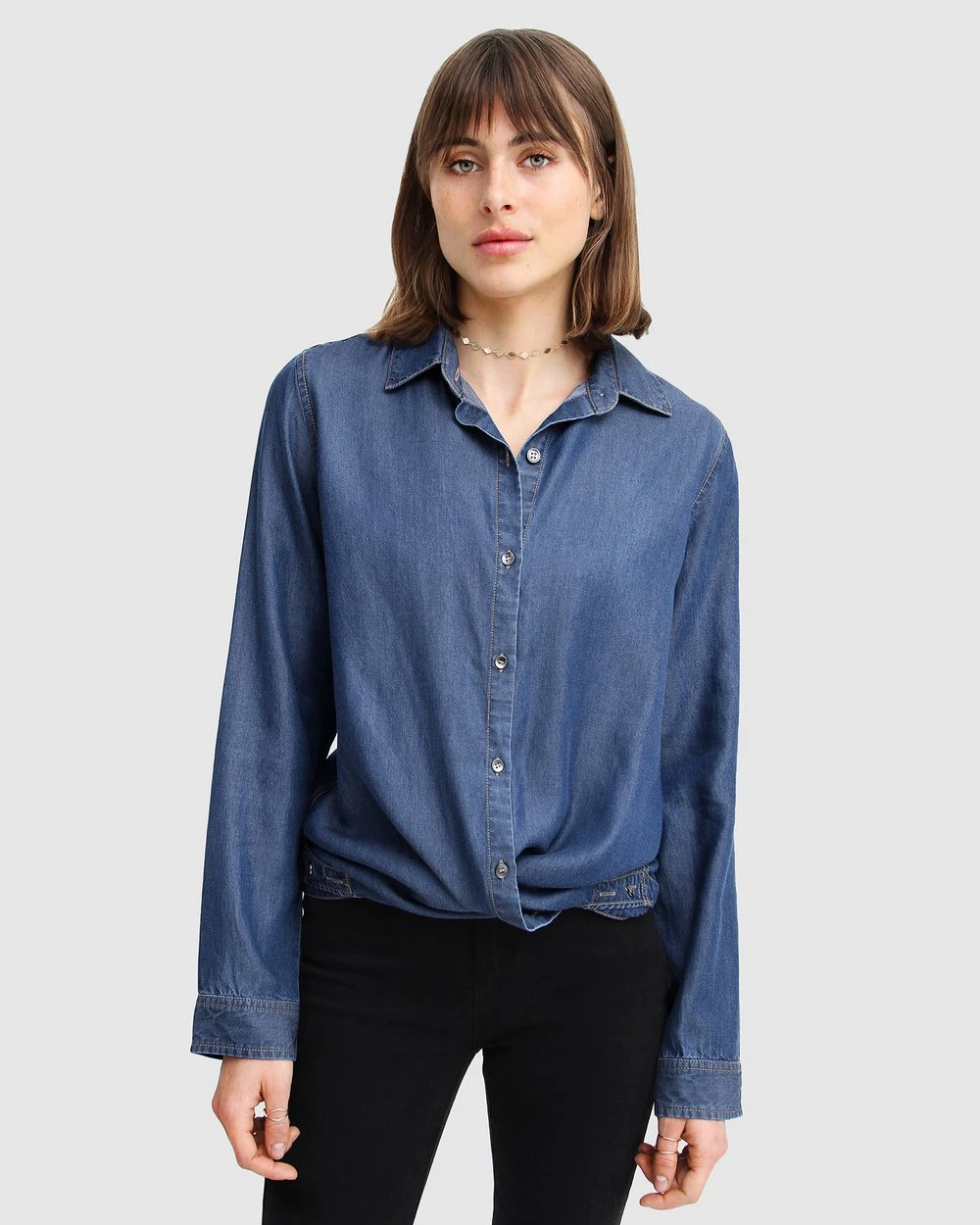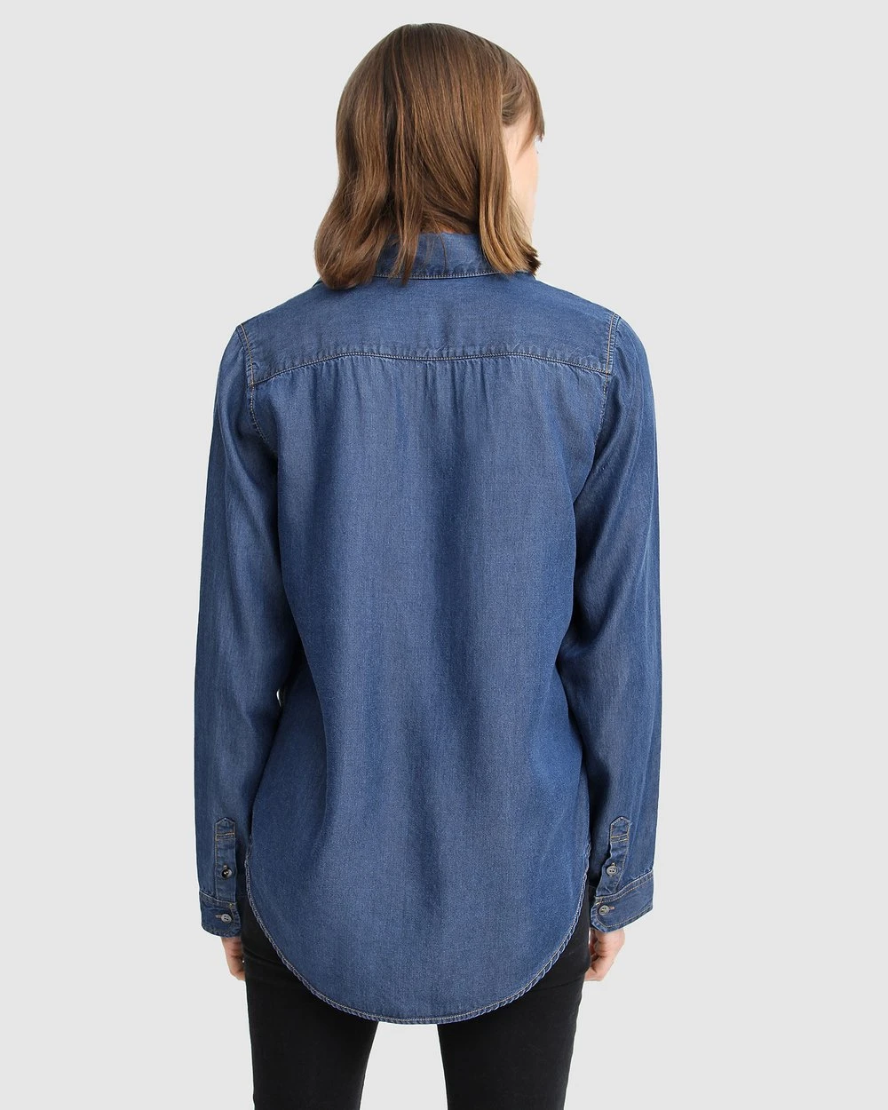 To be worn two ways, the Keep Me Wild Denim Top by Belle & Bloom converts from a loose denim shirt into a wrap style with just two buttons. We love this effortless upgrade to this wardrobe staple.