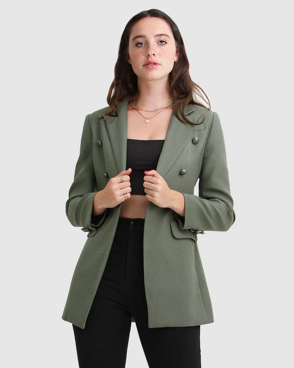 Effortless yet elevated, Princess Polina Textured Weave Blazer by Belle & Bloom will become your new favourite classic piece. This single-breasted jacket combines the tailored look with metal statement buttons for extra glam on the go. Skinny pants or frilly dress, it will elevate any look.