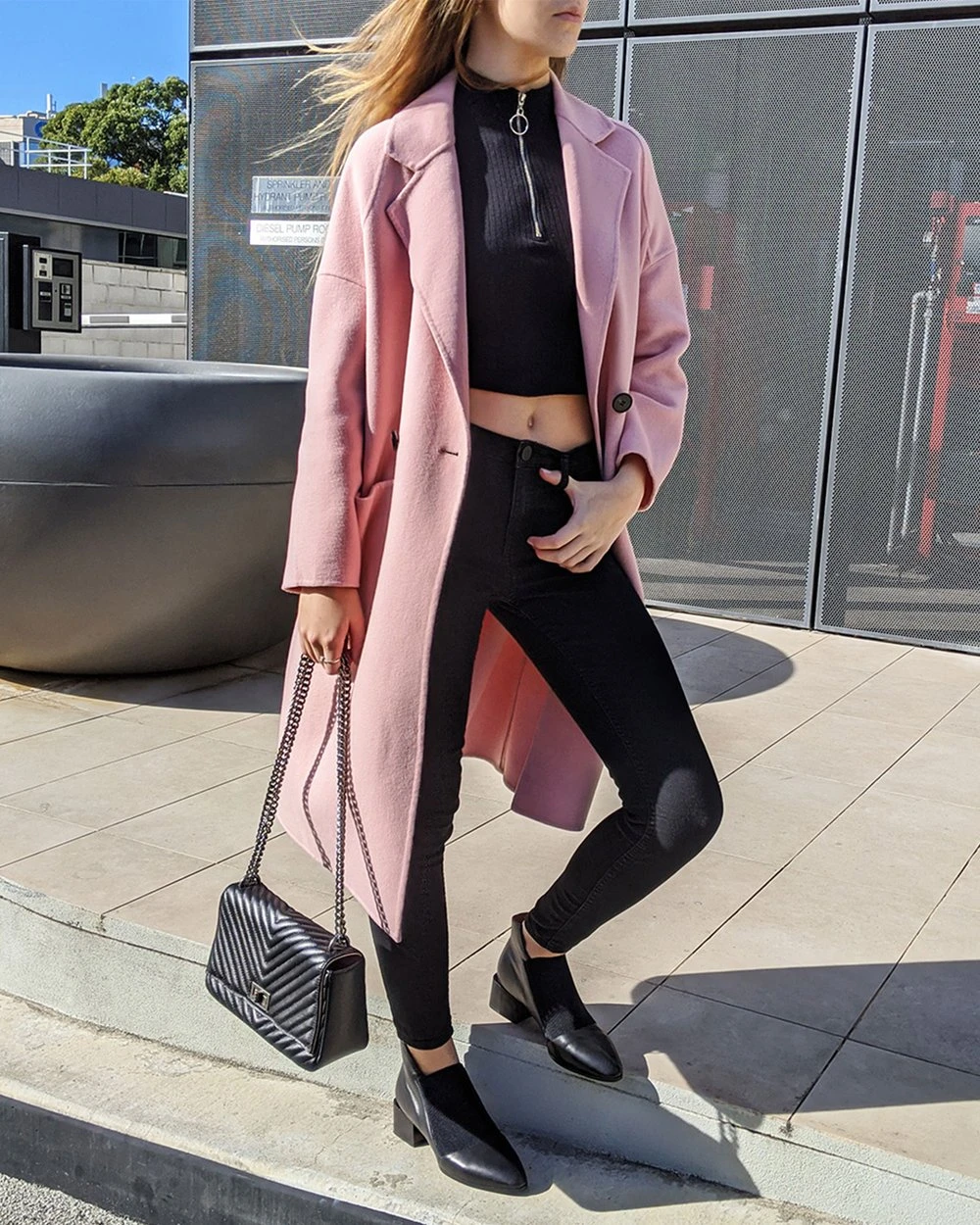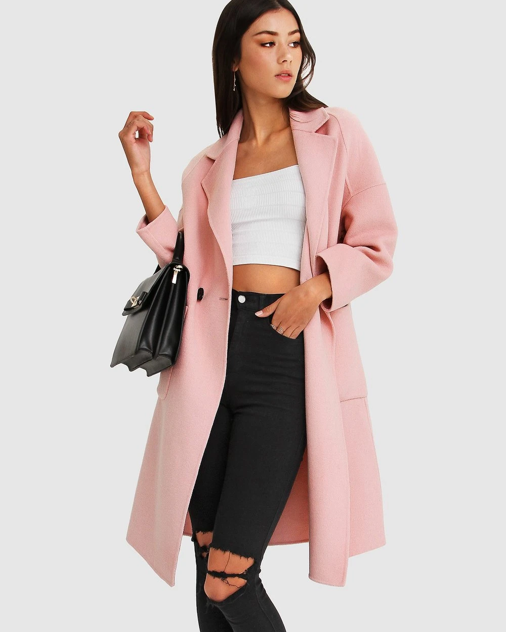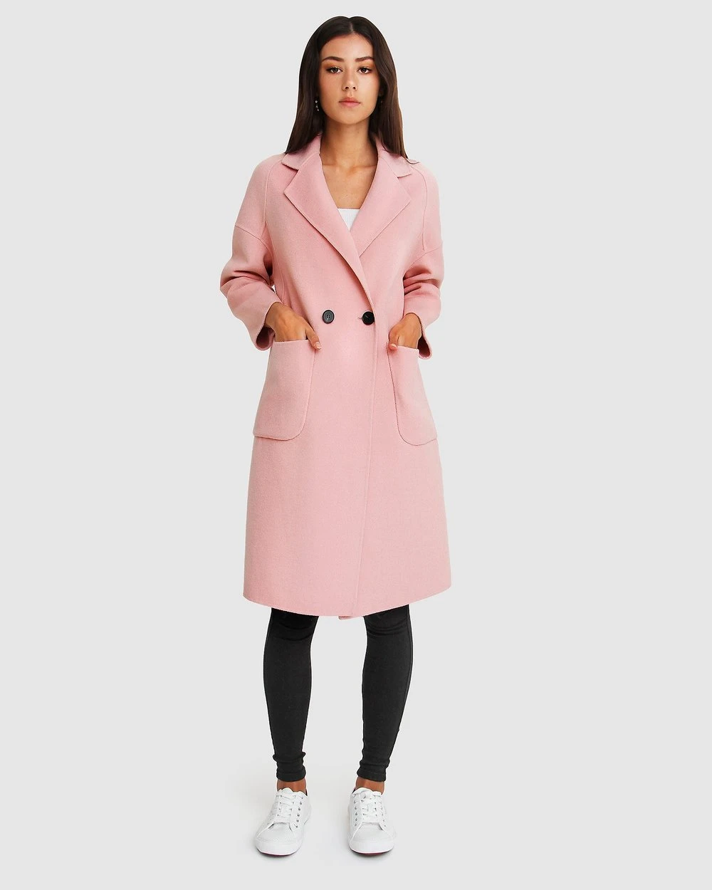 With clean lines in a minimalist cut, the Publisher Double-Breasted Wool Blend Coat by Belle & Bloom is the ideal winter topper coat in a soft wool-blend. The oversized silhouette creates the perfect cocoon of warmth while staying relaxed, yet chic.