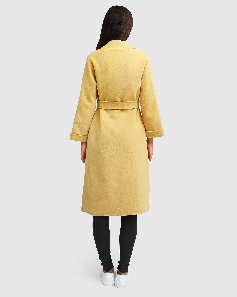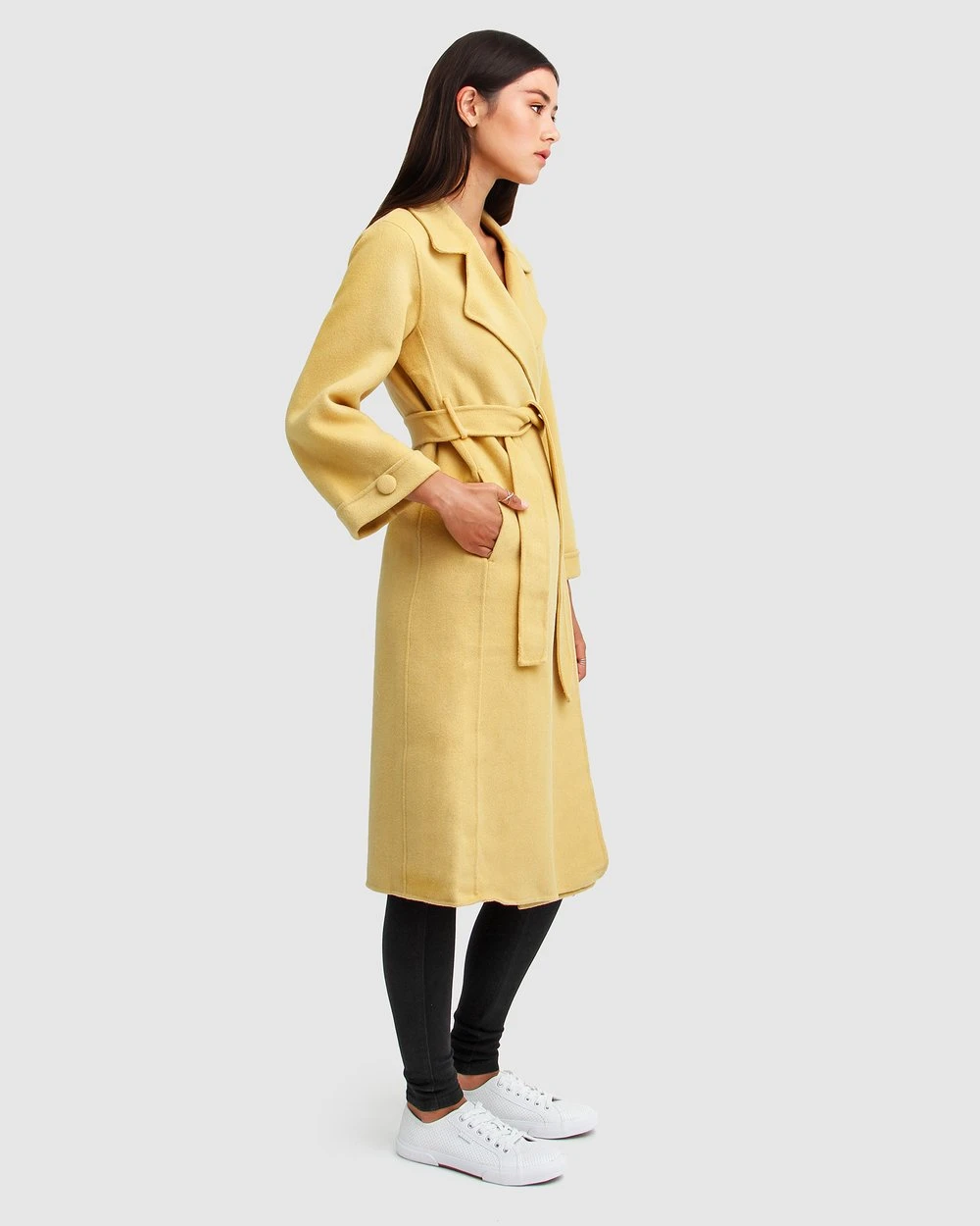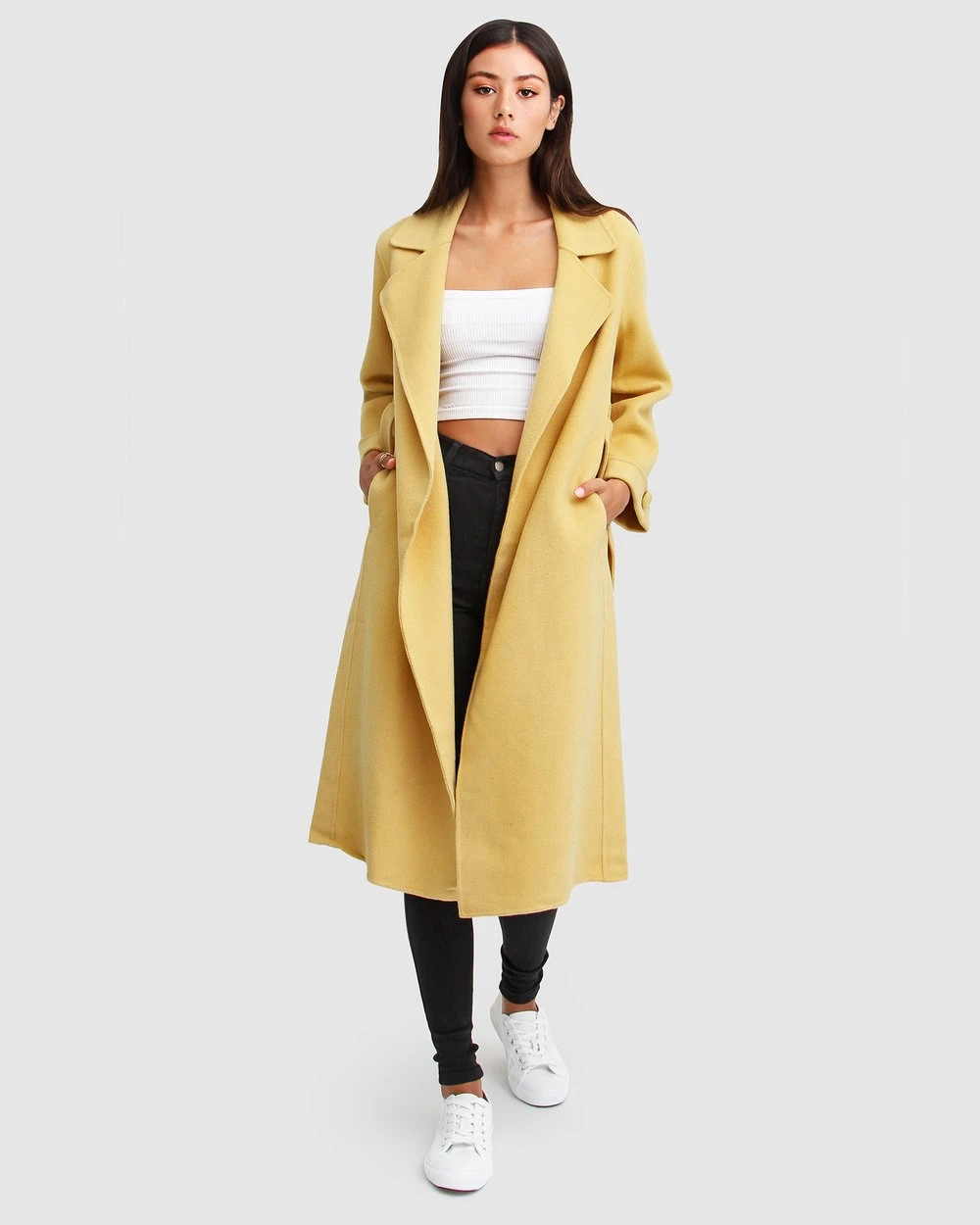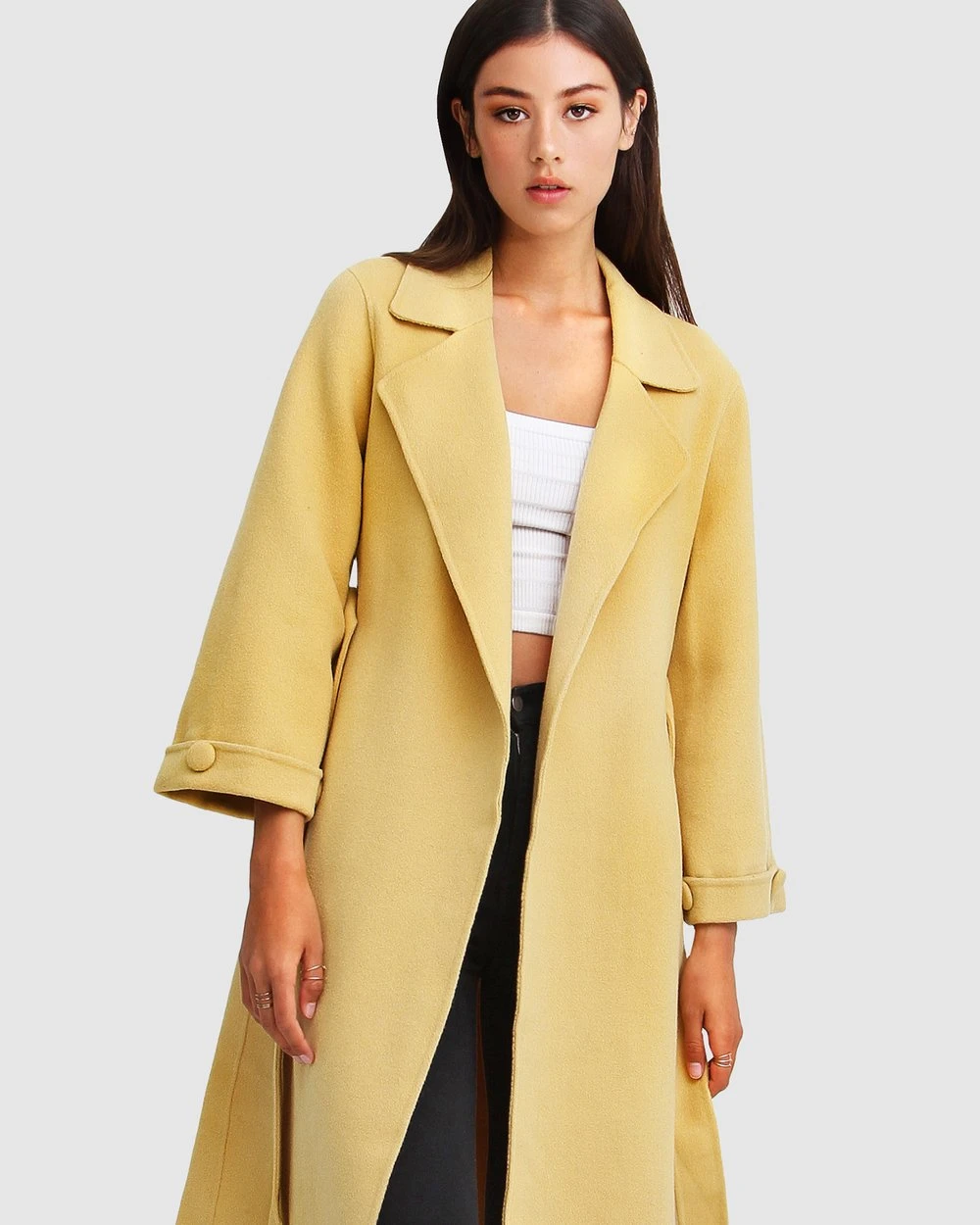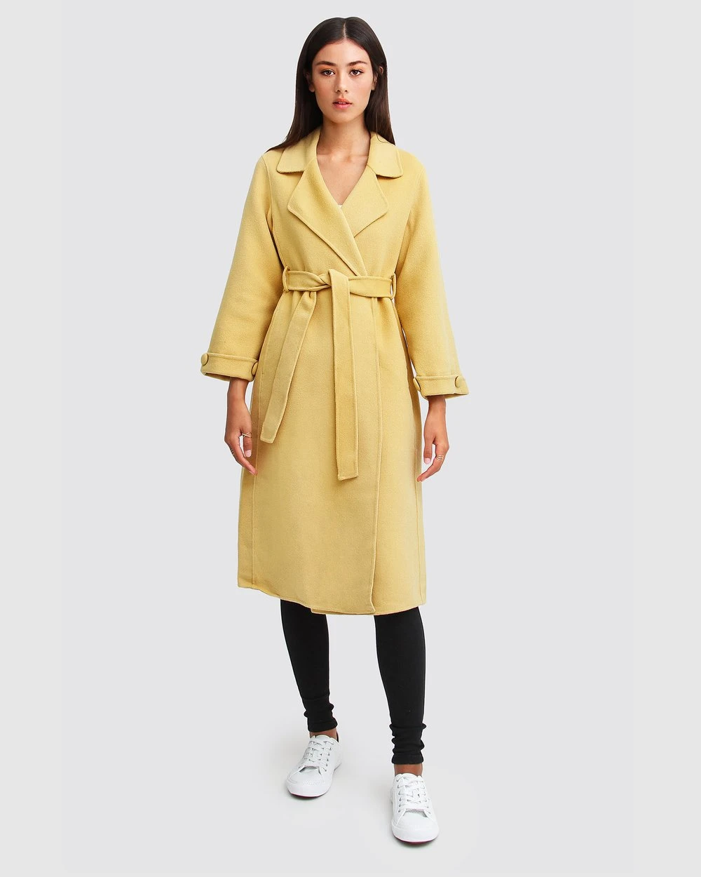 A wardrobe superstar for seasons to come, Stay Wild Oversized Wool Coat by Belle & Bloom is tailored from 100% double-brushed wool and showcases removable self-tie belt. Oversized lapels and detailed cuffs accentuates the luxurious finishing.