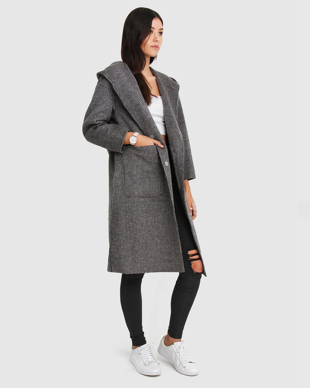 Embrace the winter fashion in Walk This Way Wool Blend Hooded Coat by Belle & Bloom. This gorgeous style is made of a luxury fabric in a relaxed oversized silhouette. The main features like hidden closure, cropped sleeves and a large hood captures the essence of casual style just perfectly. Wear it with sneakers and boho dress for the cool laid-back effect or with luxe knits and ankle boots for a sharp office look.