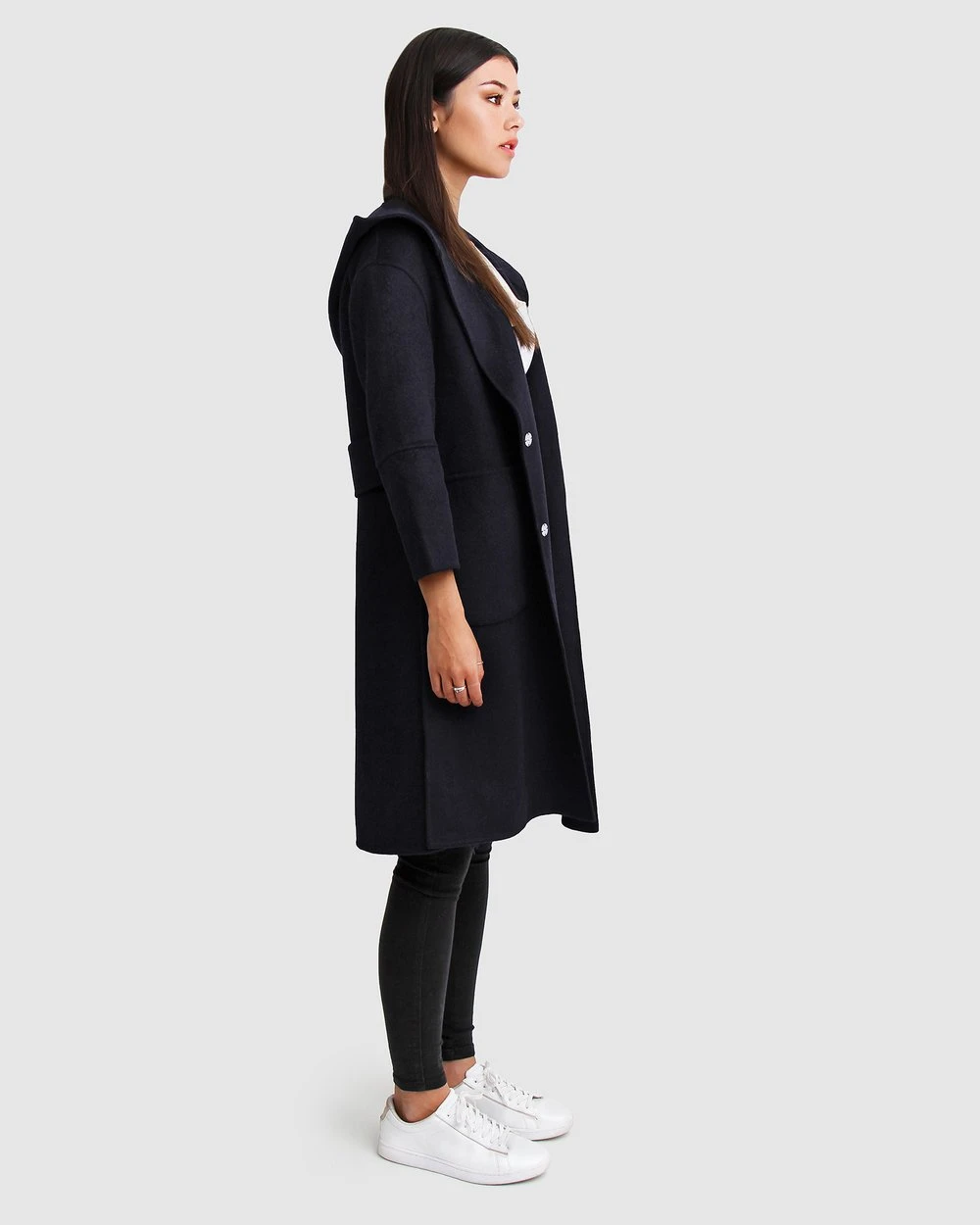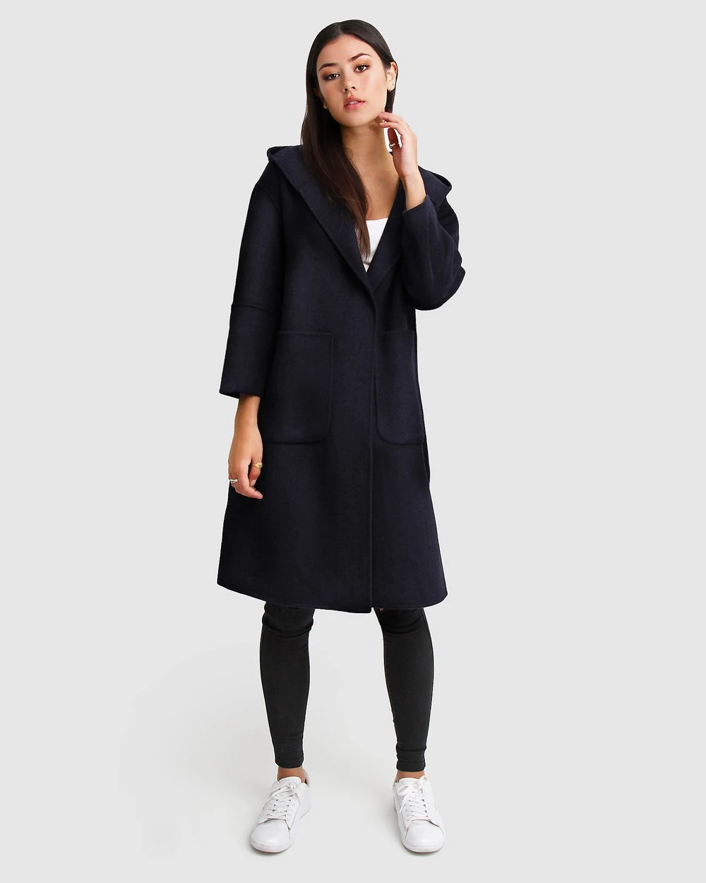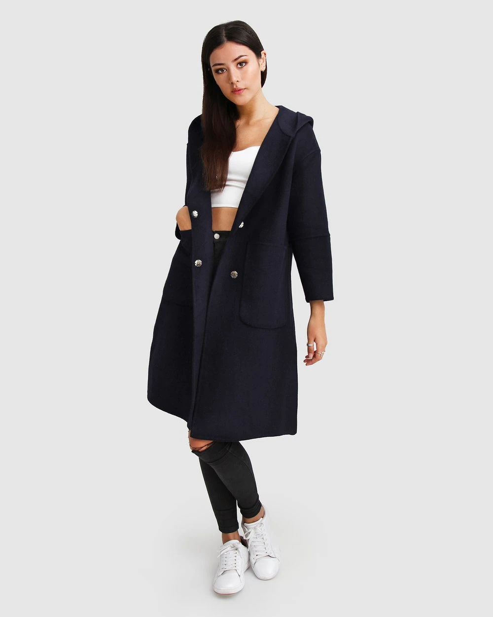 Embrace the winter fashion in Walk This Way Wool Blend Hooded Coat by Belle & Bloom. This gorgeous style is made of a luxury fabric in a relaxed oversized silhouette. The main features like hidden closure cropped sleeves, and a large hood captures the essence of casual style just perfectly. Wear it with sneakers and boho dress for the cool laid-back effect or with luxe knits and ankle boots for a sharp office look.