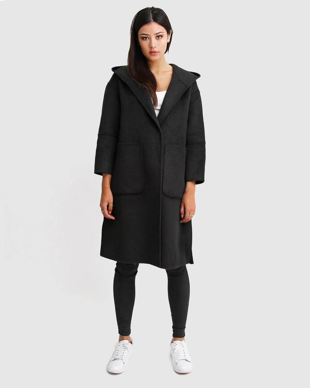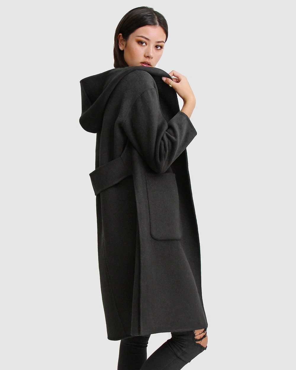 Embrace the winter fashion in Walk This Way Wool Blend Hooded Coat by Belle & Bloom. This gorgeous style is made of a luxury fabric in a relaxed oversized silhouette. The main features like hidden closure, cropped sleeves and a large hood captures the essence of casual style just perfectly. Wear it with sneakers and boho dress for the cool laid-back effect or with luxe knits and ankle boots for a sharp office look.