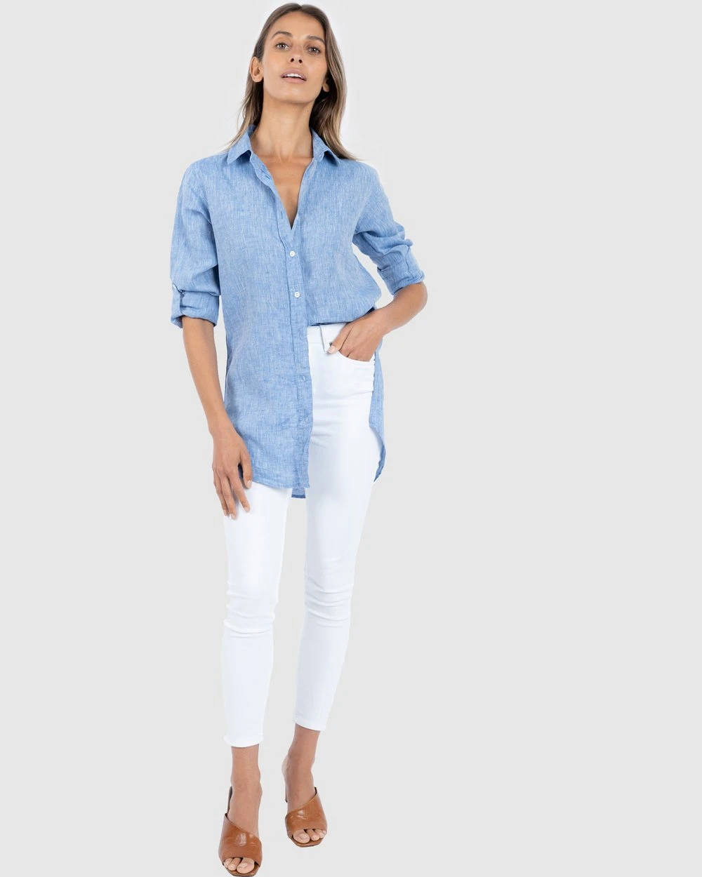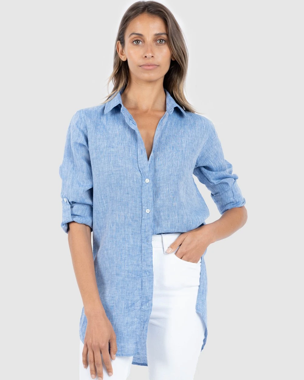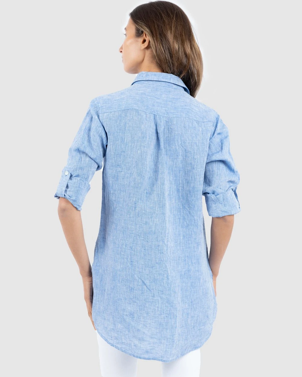 This comfortable Gaia Blue Melange airy tunic by CAMIXA is a modern take on the classic shirt-dress. Keeping you cool and right on trend, this pure linen treat will become a favourite go to in your wardrobe. Gently relaxed with sleeve tabs, hi-low to hide all the things that needs to hide, it’s great with leggings or trousers as it falls over your hips. Made with soft mid-weight pure linen it features a full-length button closure, side slits and a longer back.