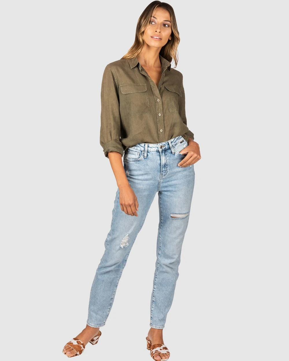 Our model is wearing a size S/AU 8 shirt. She is 170cm tall with a 81cm bust, 61cm waist and 86cm hips