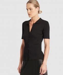 FRIEND of AUDREY Madden Buttoned Polo Knit Black