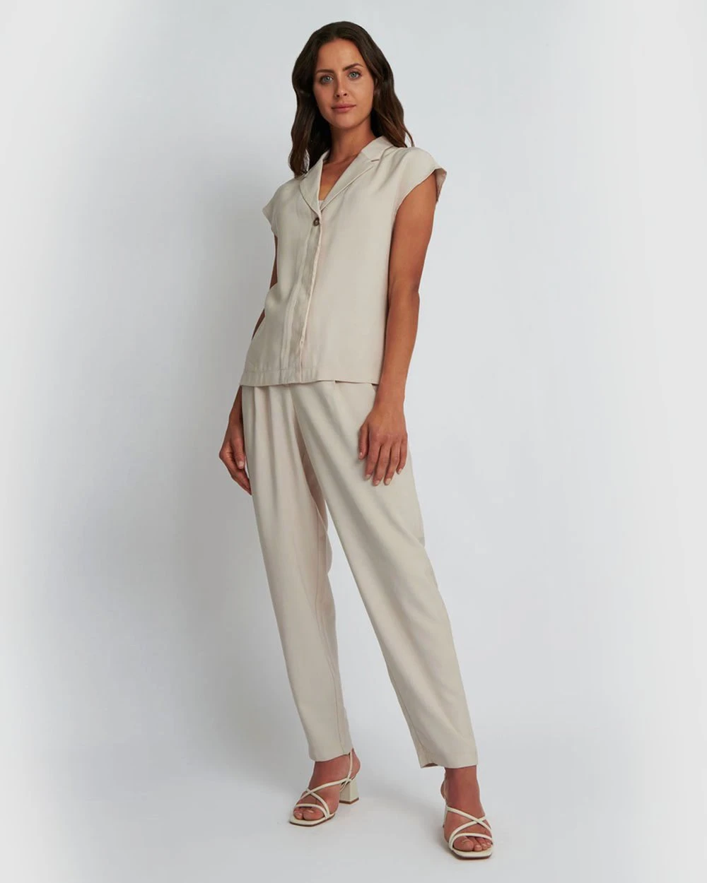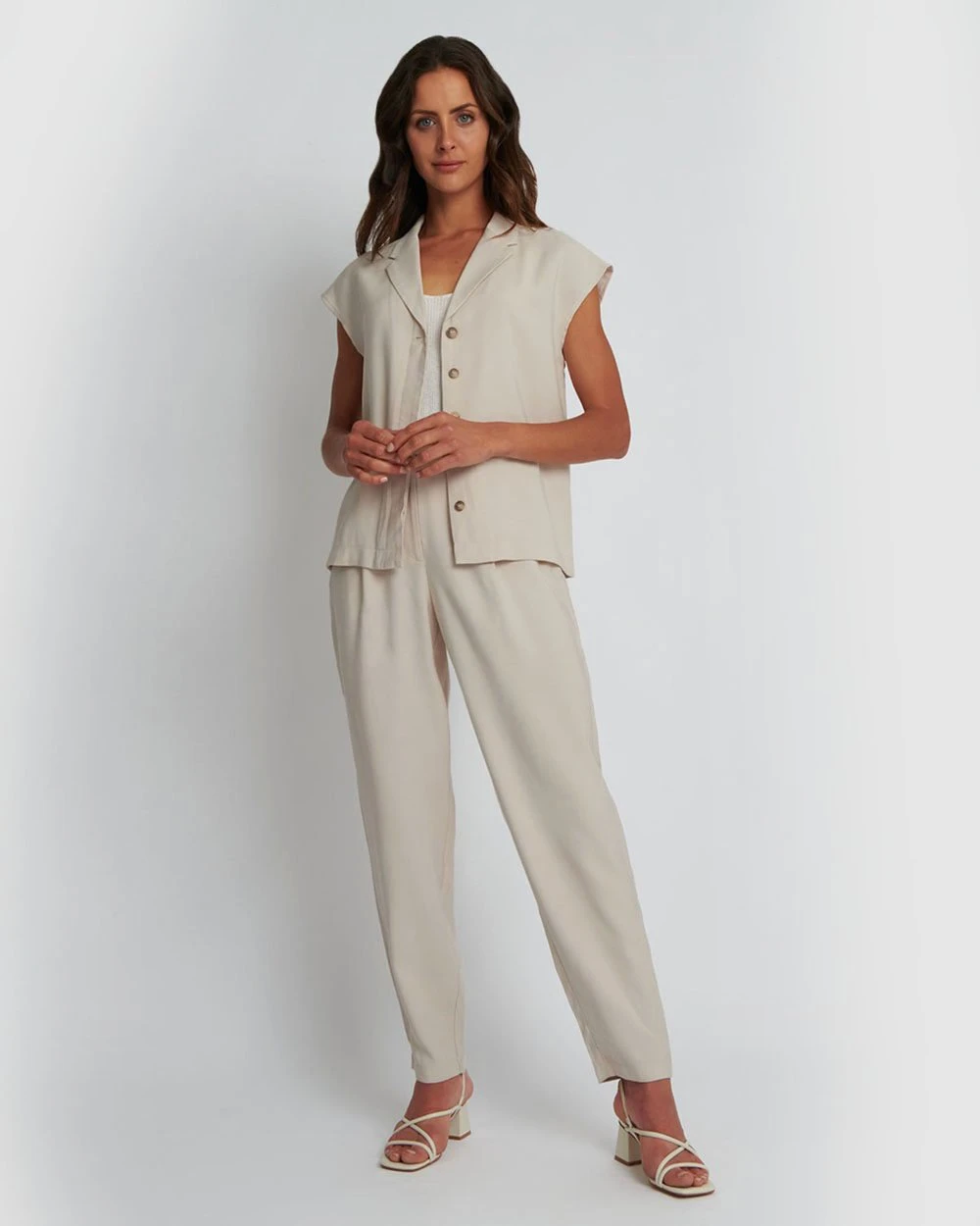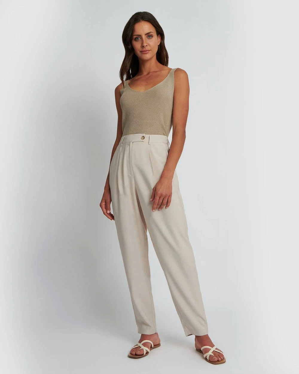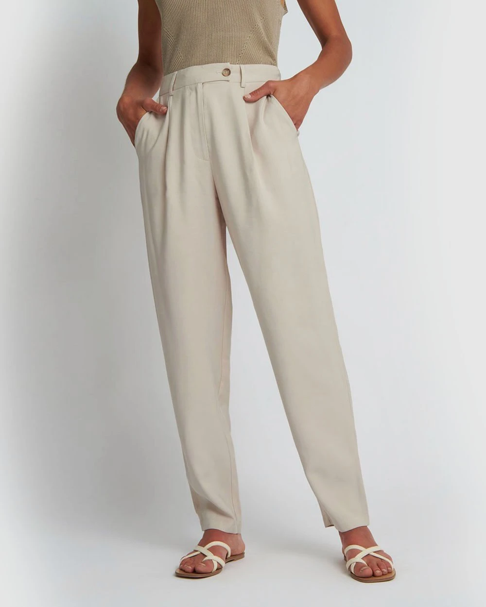 Refresh your professional picks with the Abbigail High-Waisted Tapered Pants by Forcast. The tapered design is sure to be a season favourite with its relaxed and chic style, perfect for day or night. Team it with a simple blouse for a clean and classy finish or complete the set with the matching Abbigail V- Neck Collared Blouse.