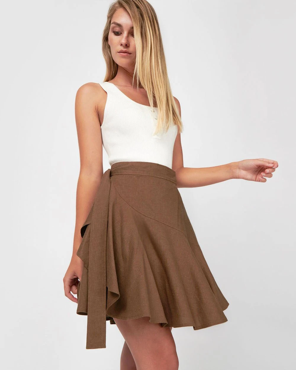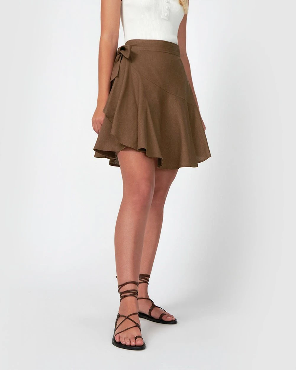 Look effortlessly chick this summer in the Adina Ruffle Wrap Mini Skirt by Forcast. Redefining traditional A-line skirts, this wrapped skirt features a high-waist with tie side and drape details that will elevate your style.