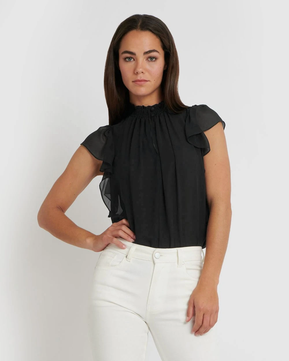 The Aeris Shirred Neck Top by Forcast is a classy addition for your work wardrobe. Sure to be a favourite this season, featuring high neckline with shirred detail that can be worn opened or closed, this light style is perfect for a busy day. Tuck into high waisted culottes or pencil skirt for a chic and sophisticated work look.